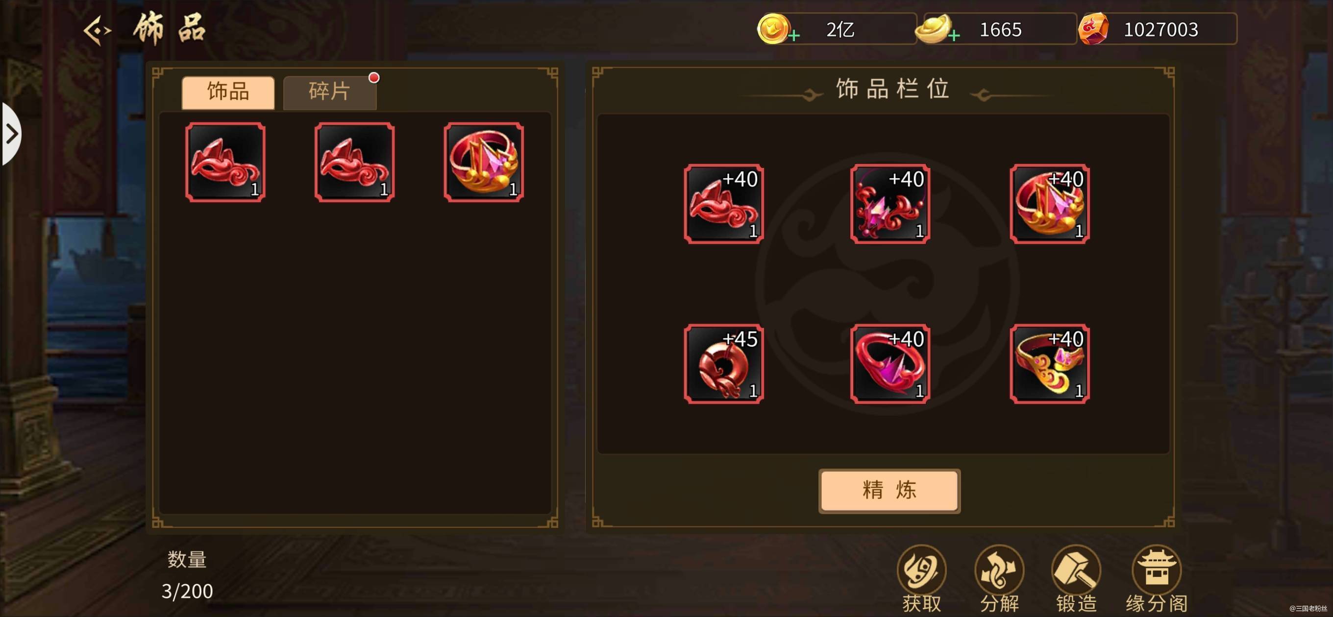 #攻略分享#一些数据,给大家参考一下。 关于饰品精炼战力的。 号上原饰品等级是5个40级,1个45级。 降级成1个40级,5个25级,战力掉了13万战力。 降级成1个40级,5个30级,战力掉了10万战力。 降级成3个40级,2个35,1个30级,战力掉5万。 因为兵符加攻击的,加上一次分解只能5个,所以兵符我测试的时候,没动他,另外饰品别去重铸,那个扣百分之30的材料,得不偿失!!!