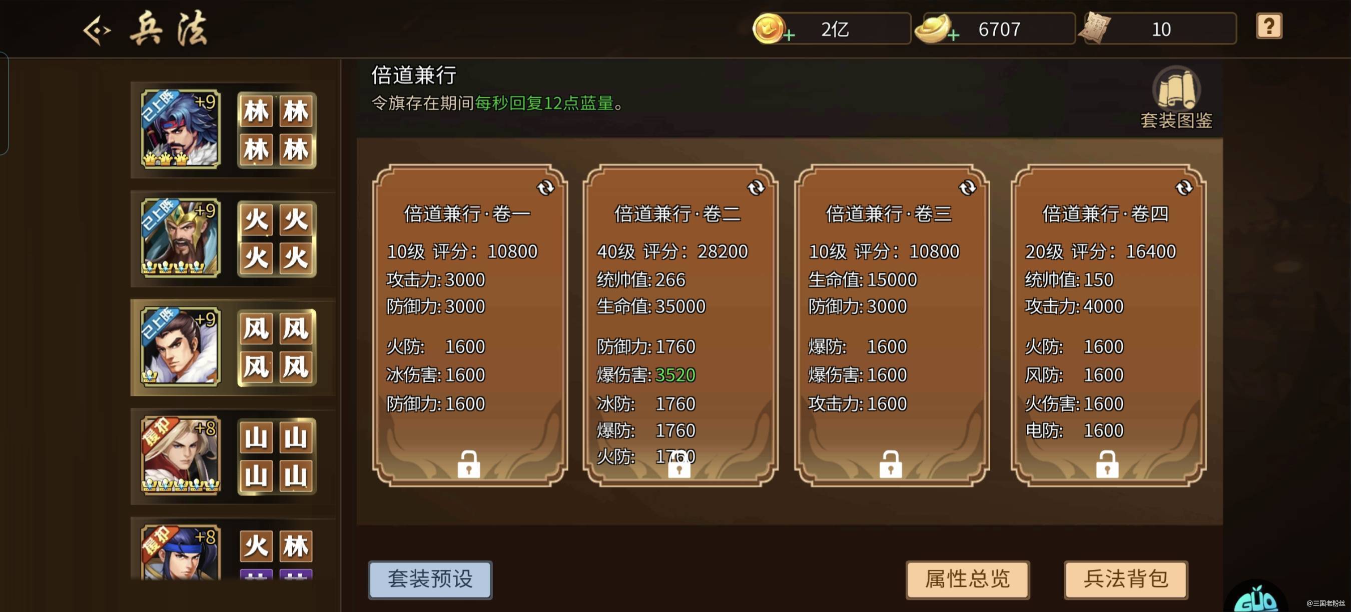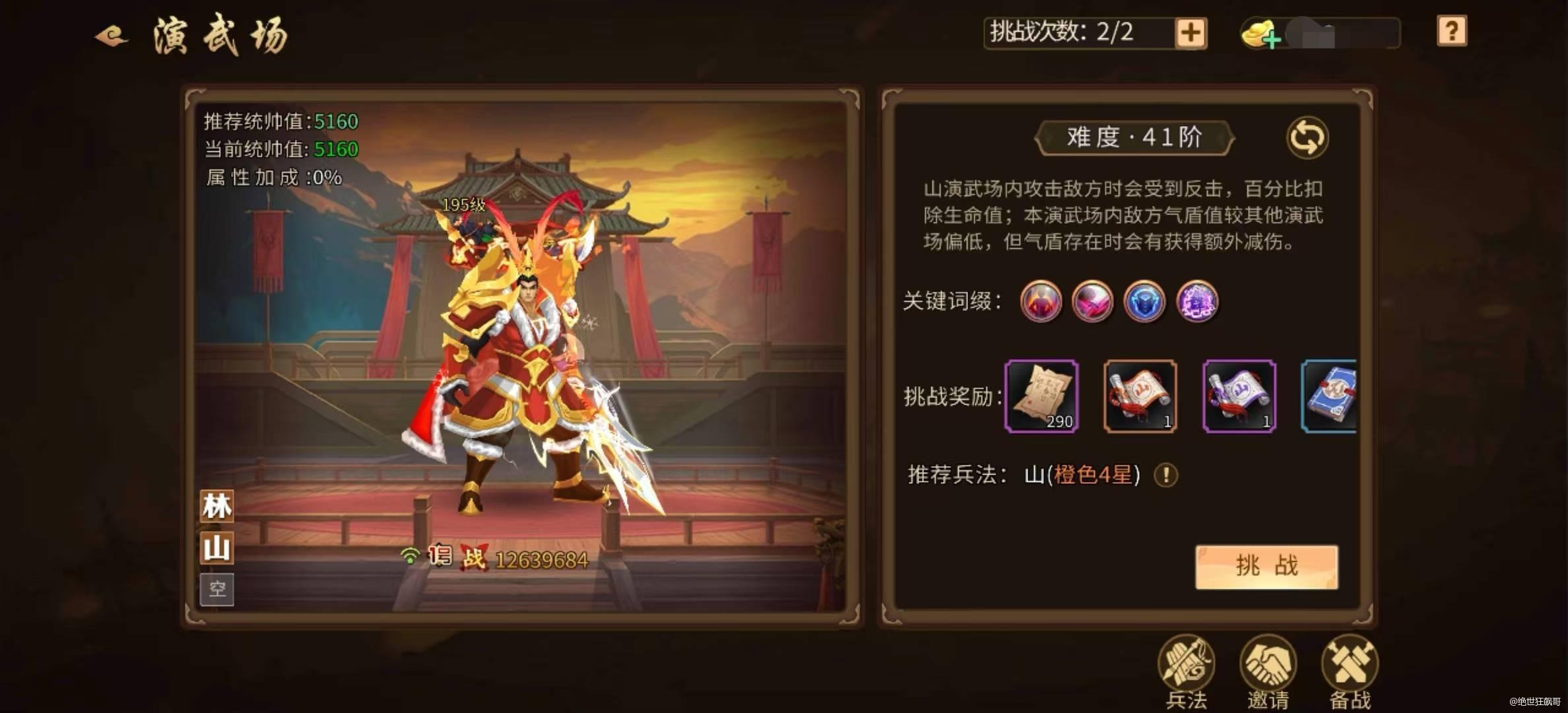 #攻略分享#【平民玩家兵法建议】 一句话不追求属性,不追求攻击,给啥用啥,随缘。 平民玩家现阶段不建议重铸任何兵法,你重铸了就是亏4成残片,有橙色就用,没有橙色那紫色也上,慢慢凑,慢慢熬,打不了高层那就降层,是吧,别勉强强迫自己,省得被打击。 我现在兵法的玩法就是,主要先升级2套主力兵法,升二四卷,把统帅堆上去,然后每星期遇到什么图,就上2套主力,和一套对应图的兵法,如果该星期的图是我主力兵法的图