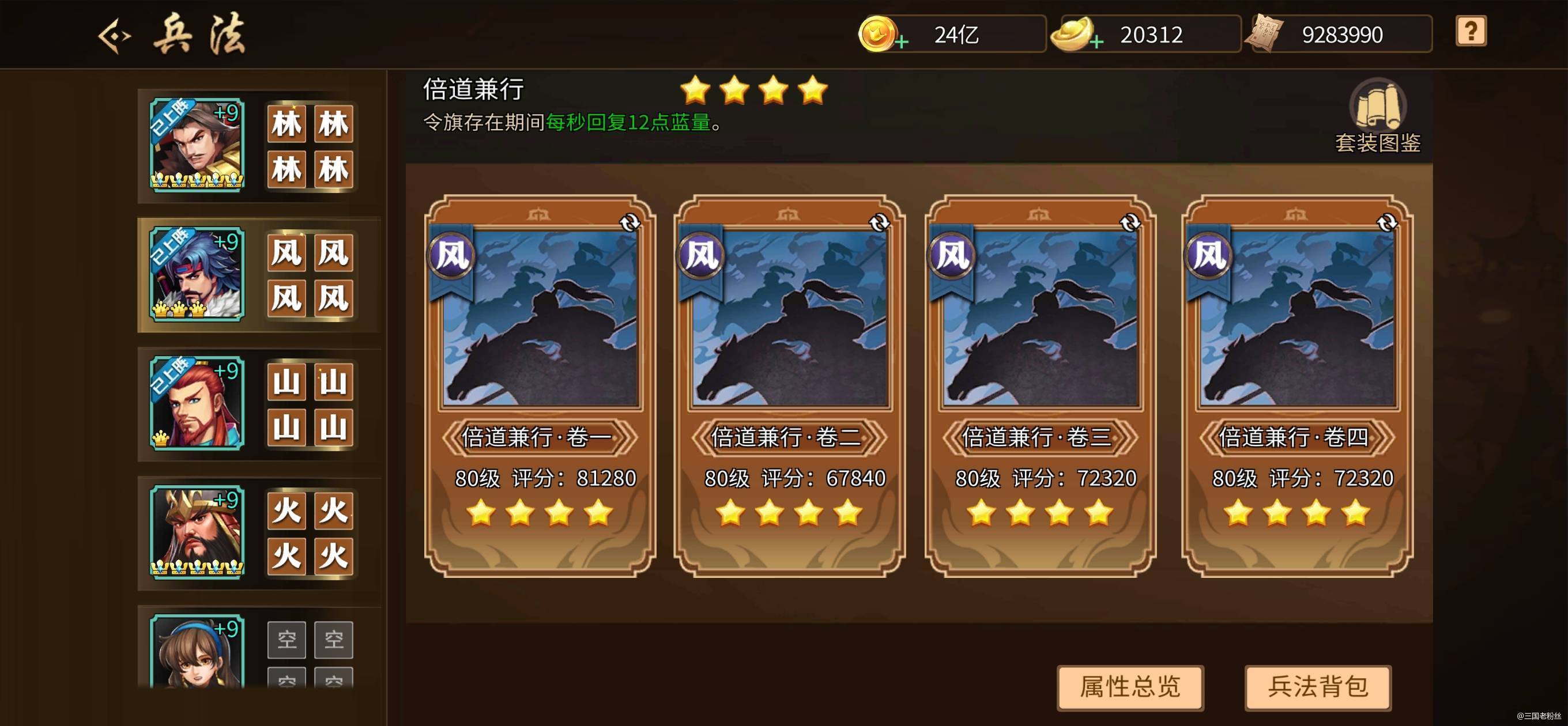 兵法搭配与策略 套装属性:橙色兵法具有套装属性,当玩家凑齐一整套橙色兵法时,可以激活套装属性,获得额外的属性加成。因此,玩家在培养兵法时,应注重搭配和收集完整的套装。 属性选择:在选择兵法时,玩家应根据自身需求和武将特点来选择合适的属性。例如,对于攻击型武将,可以选择提升攻击力和暴击率的兵法;对于防御型武将,则可以选择提升防御力和生命值的兵法。 策略运用:在战斗中,玩家应根据敌方的兵种和阵法来调整