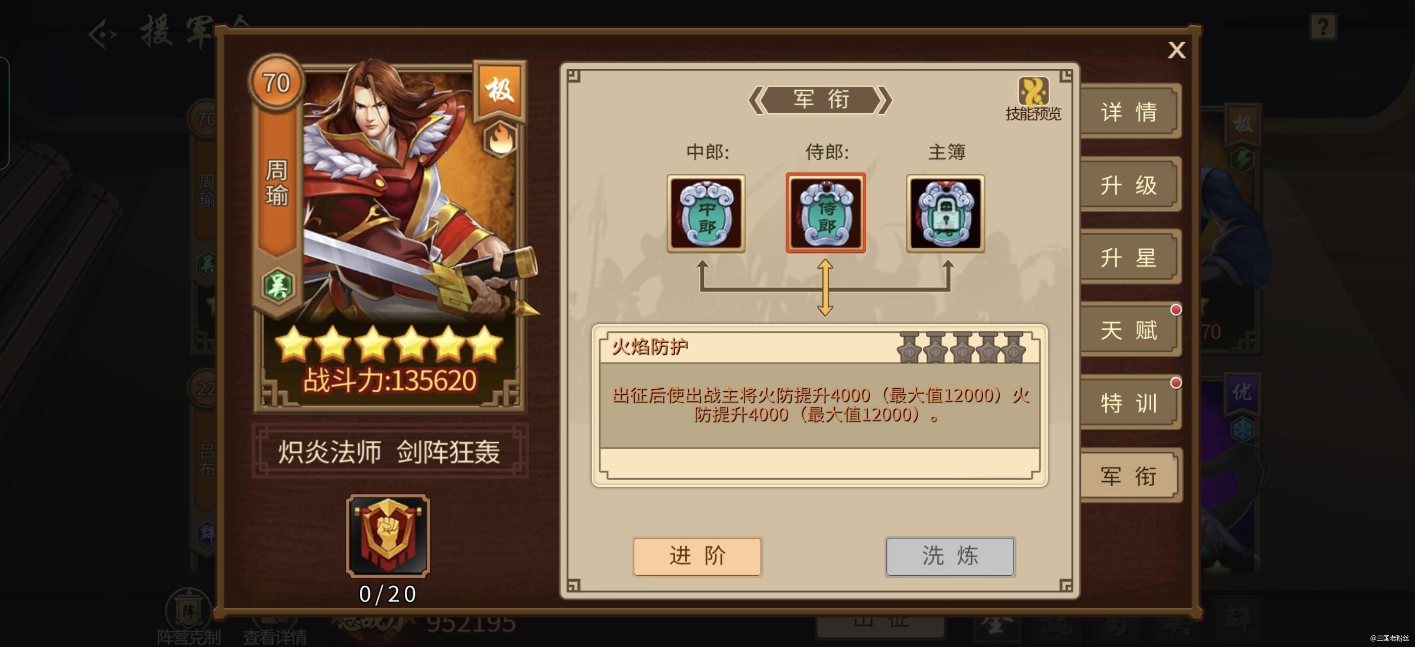 #攻略分享#我这应该是全渠道更新以来最快军衔进阶的号了,因为都是这星期打完15层才够资源的。 只有进阶后,才知道这个东西,又是个吃时间大户。 橙色初始是4000+4000,进阶后5200+5200,战力加4400,这个按1分1战力计算的。 第一阶需要20个军功,需要打一个月才出,每星期只给5个。 第二阶需要40个军功,需要2个月,盲猜如果第三阶需要60个,第四阶需要80个,第五阶需要100个的话,