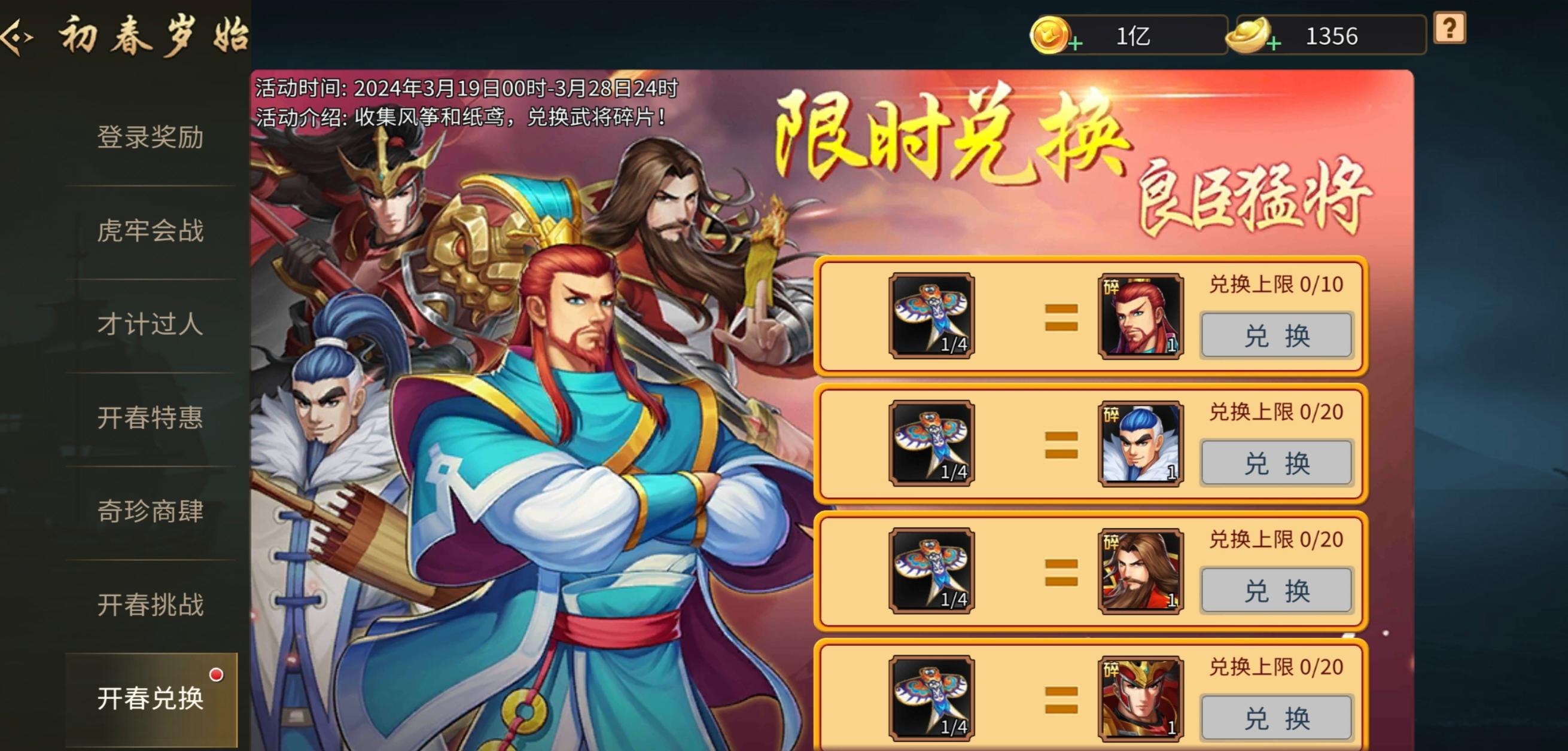 这次活动新武将可以白嫖多少碎片? 每天兑换的 第一天换8个马谡碎片 第二天换8个马谡碎片 第三天换8个马谡碎片 第四天换9个马谡碎片 第五天换9个马谡碎片 第六天换9个马谡碎片 第七天换9个马谡碎片 总共60碎片 (这里也可以记一下,凡是这类兑换活动,7天都是换60碎片,满载可以70碎片,但是需要花元宝买纸鸢) 虎牢关那边的 第一天,2个马谡碎片 第二天,2个马谡碎片 第三天,4个马谡碎片 第四天