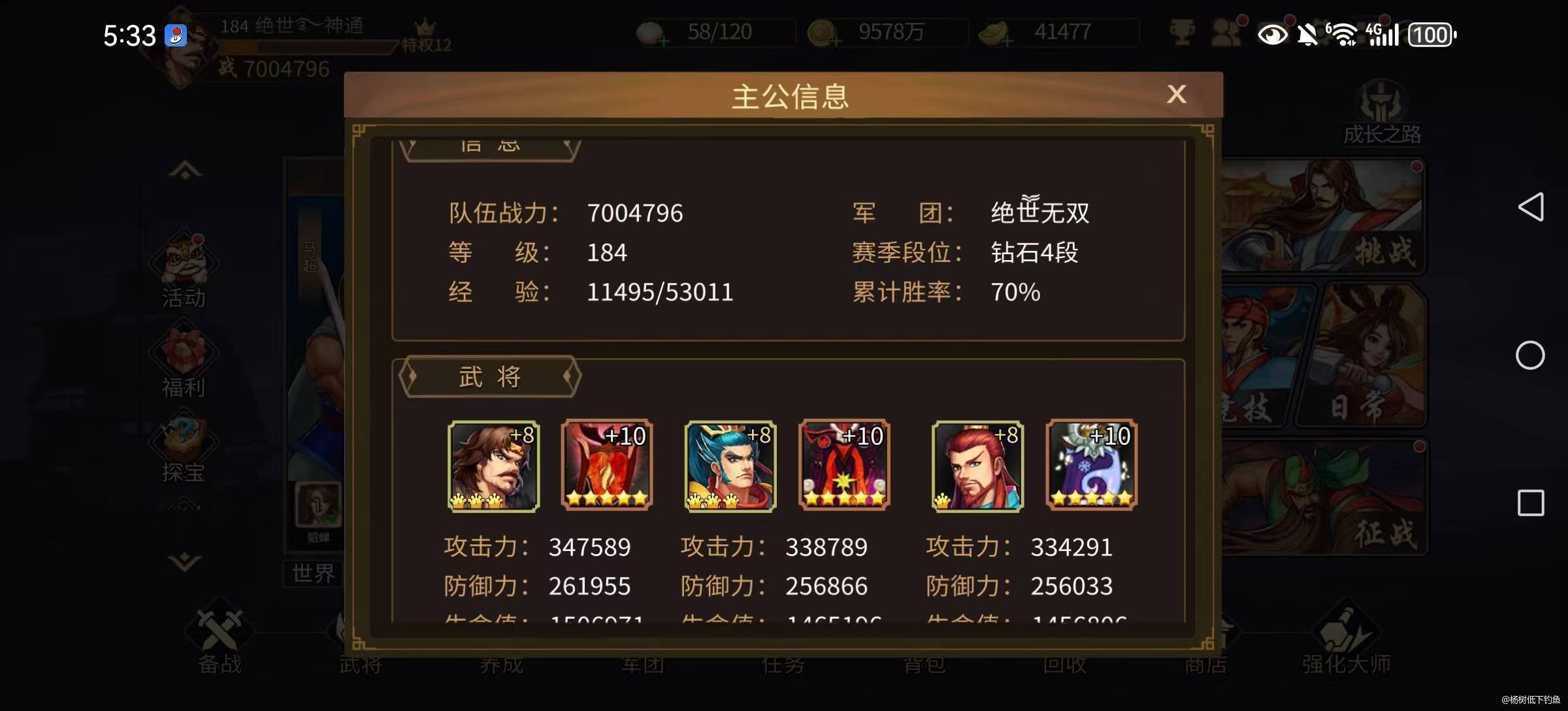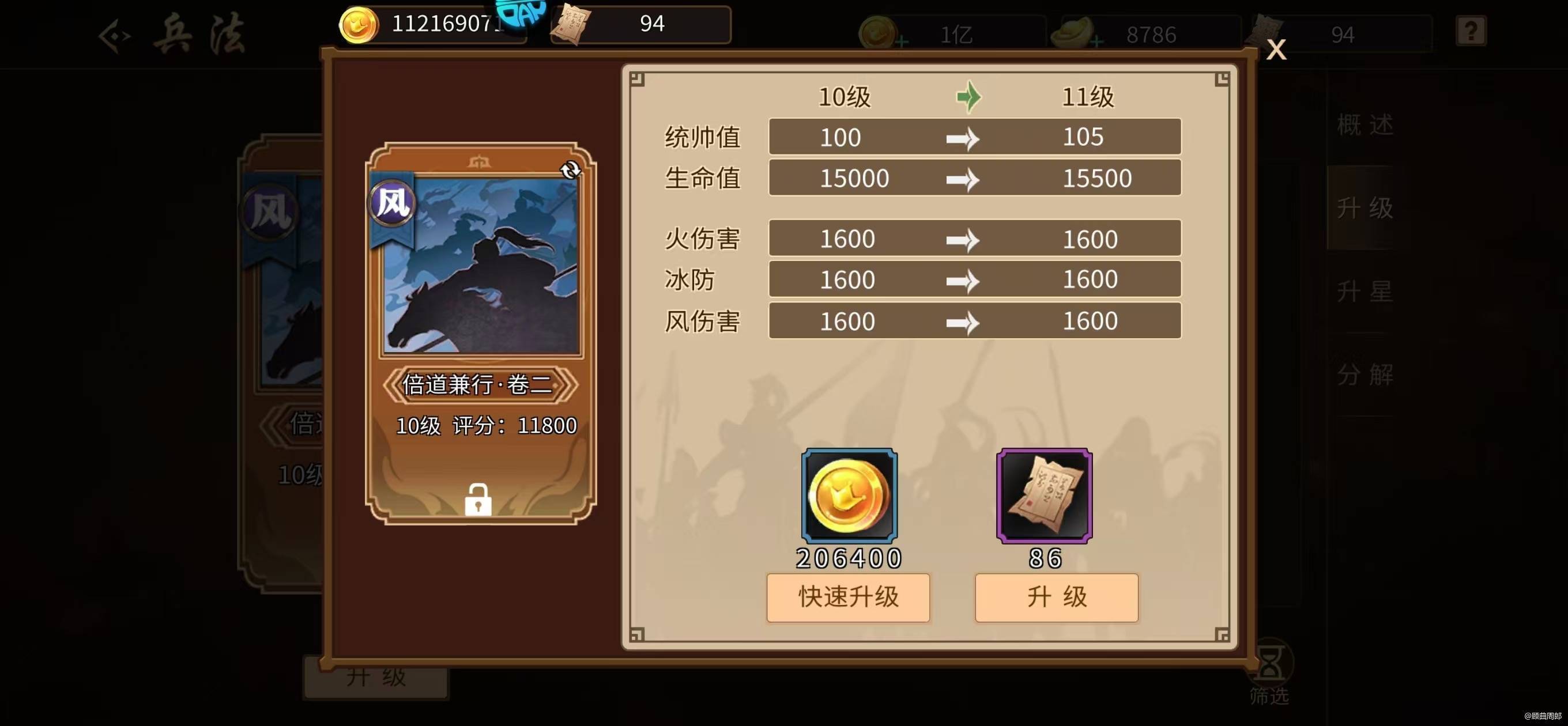 那个值得升级培养那个不值得培养的还不够明白透彻? 简单来说,优先升统帅值,其他的不升级搞个套装效果就行,不升统御没法白嫖的,极品就是副属性带统帅值或攻击的,其他的不值得培养,加统御值的优先升级,可能后面有更好的会替代,但是前期你统帅值不够没法打高层获取橙色兵书。 还有一个点就是,千万别为了那鸡毛蒜皮的战力而去培养(紫色,蓝色,绿色,那种,这玩意就跟宠物,援军,浮石一样,橙色就是个标配! 不明白的欢