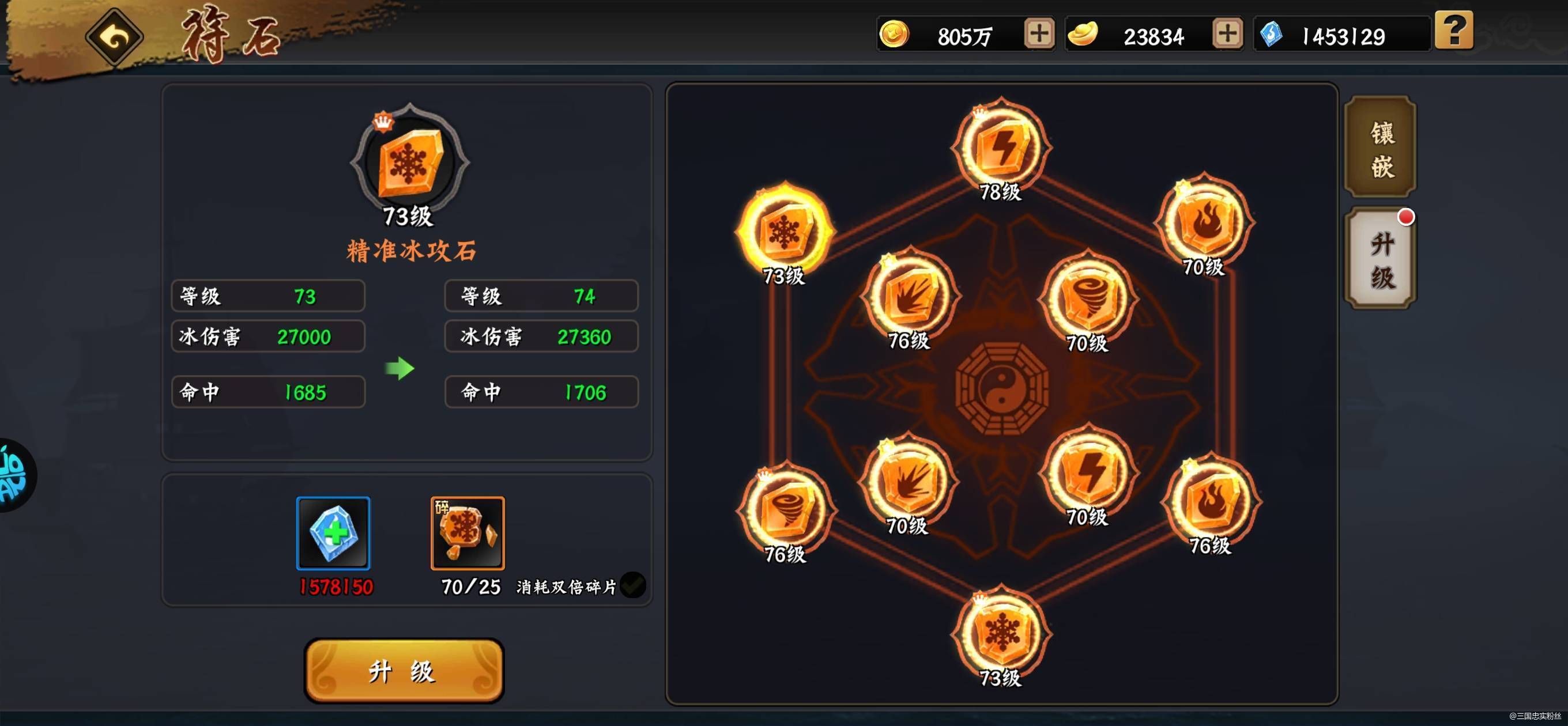 #攻略分享#符石用双倍碎片到底值不值,多少级以上用双倍碎片才更划算? 以73级石头为例,用双倍碎片需要50碎片1级,约94万经验,不用双倍碎片是157万, 157-94=63万经验 以78级石头为例,用双倍碎片需要54碎片,约 147万经验,不用双倍碎片是227万经验。 227-147=80万经验 所以,如果碎片多的玩家,符石双倍碎片升级还是划算的,如果没碎片的玩家,那就慢慢熬咯。