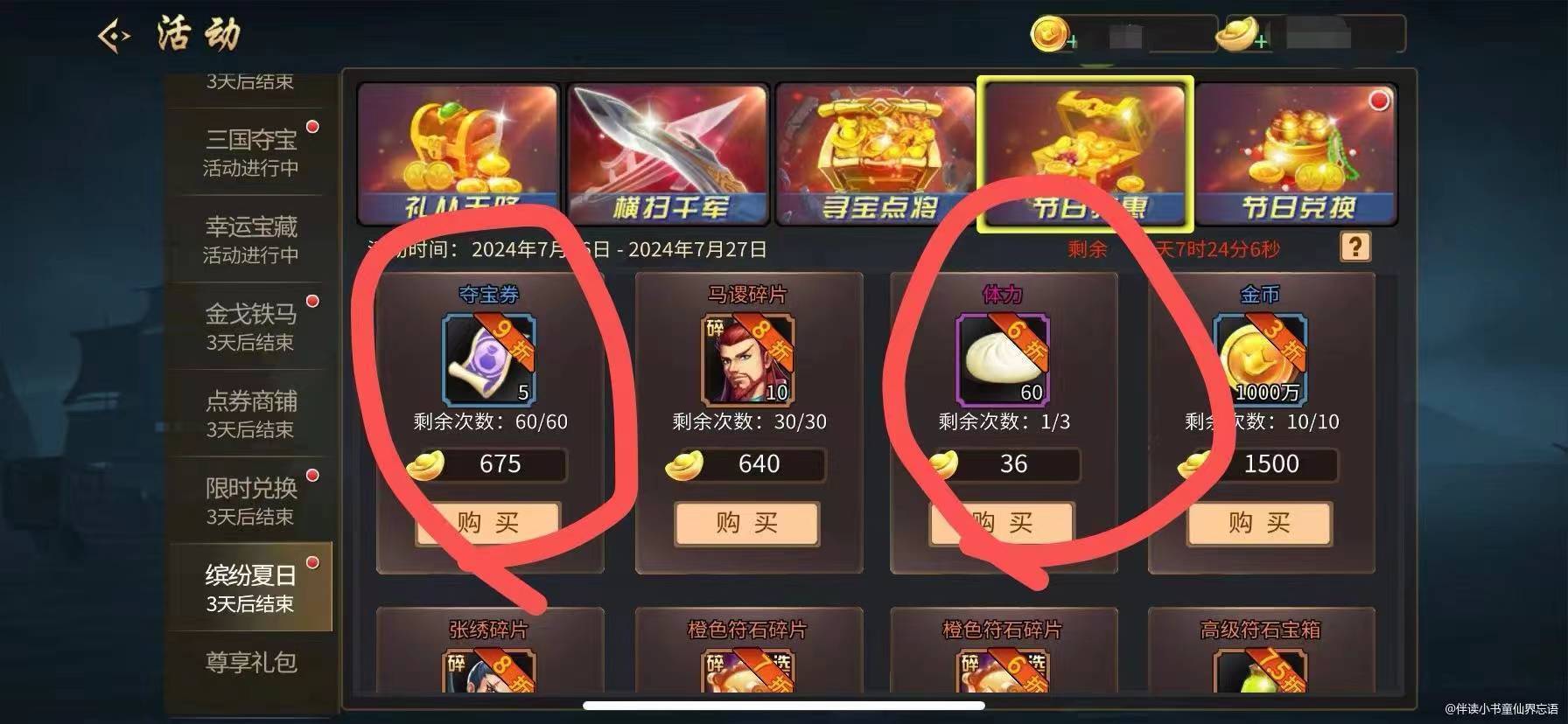 第二天也就是梦魇双倍武将、特惠商城更新资源和金秋挑战任务的区别。 1.梦魇第一天是上阵刘备双倍结算产出,第二天轮到张绣,后续待更新…… 2.特惠商城日日上新,供君挑选,或许有你感兴趣的东西,比如后几天的夺宝券…… 3.第二天有古董探宝任务,平日里还是要养成存金龙令的习惯!虽然梦魇奖励没了新武将碎片,勾的不要不要的,但多积累些花篮道具,每天可以换5个张星彩碎片,25个关银屏或吕玲绮或步练师碎片,亦或