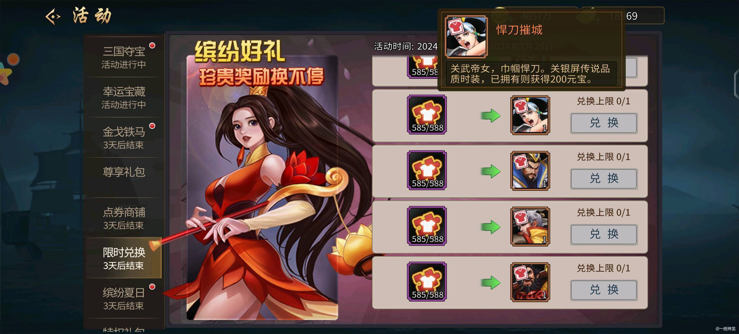 #攻略分享##三国闲话#大更新即将到来,预告出来了,说一些个人看法吧 1.月卡元宝提升,提升30%,虽然提升的不算多,苍蝇腿蚊子肉也是肉有总比没有强,对普通玩家还是有用的。 2.上线送的道具比如天书任选碎片和兵法残片,还有援军材料都是很实用的,看了一下任务也不算很难完成,拿下这些重要材料还是没问题,其他材料不够的话看着换就行。 3.上线就送的武将比如孙鲁班,公孙瓒,飞将吕布,张星彩马谡这些还是有点