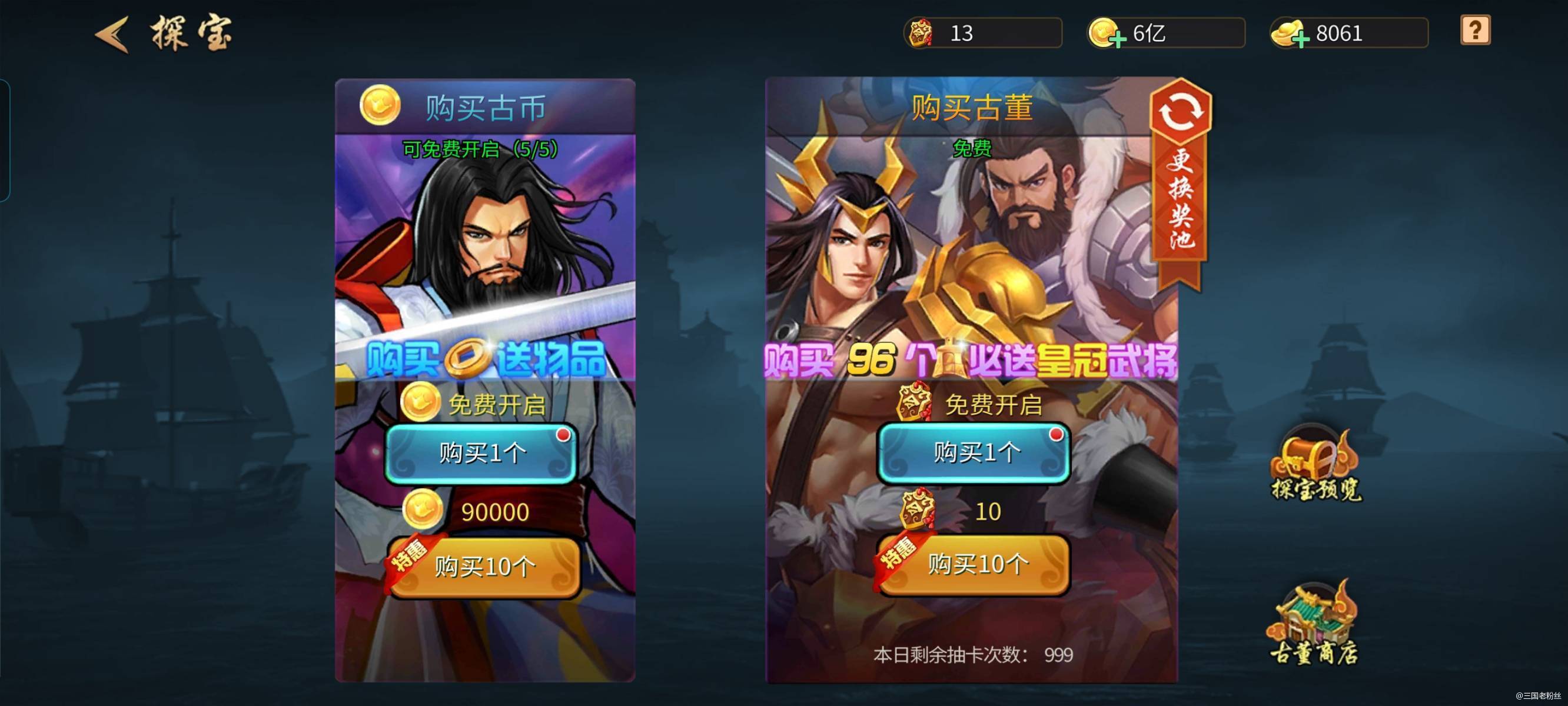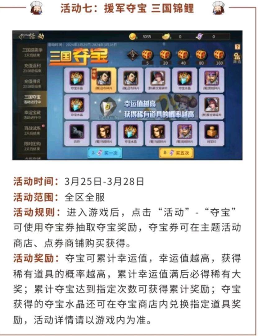 #攻略分享#探宝下次更新,金龙令有需要的可以提前存起来,增加了董卓,张秀,步练师,袁绍,文丑,程昱,虎卫张辽,虎卫夏侯惇,曹丕,孙尚香,诸葛瑾,荀攸,刘备,于禁。 很多号一些没有的武将可以慢慢白嫖了,图片仅供参考,具体以明天悟饭更新为准。
