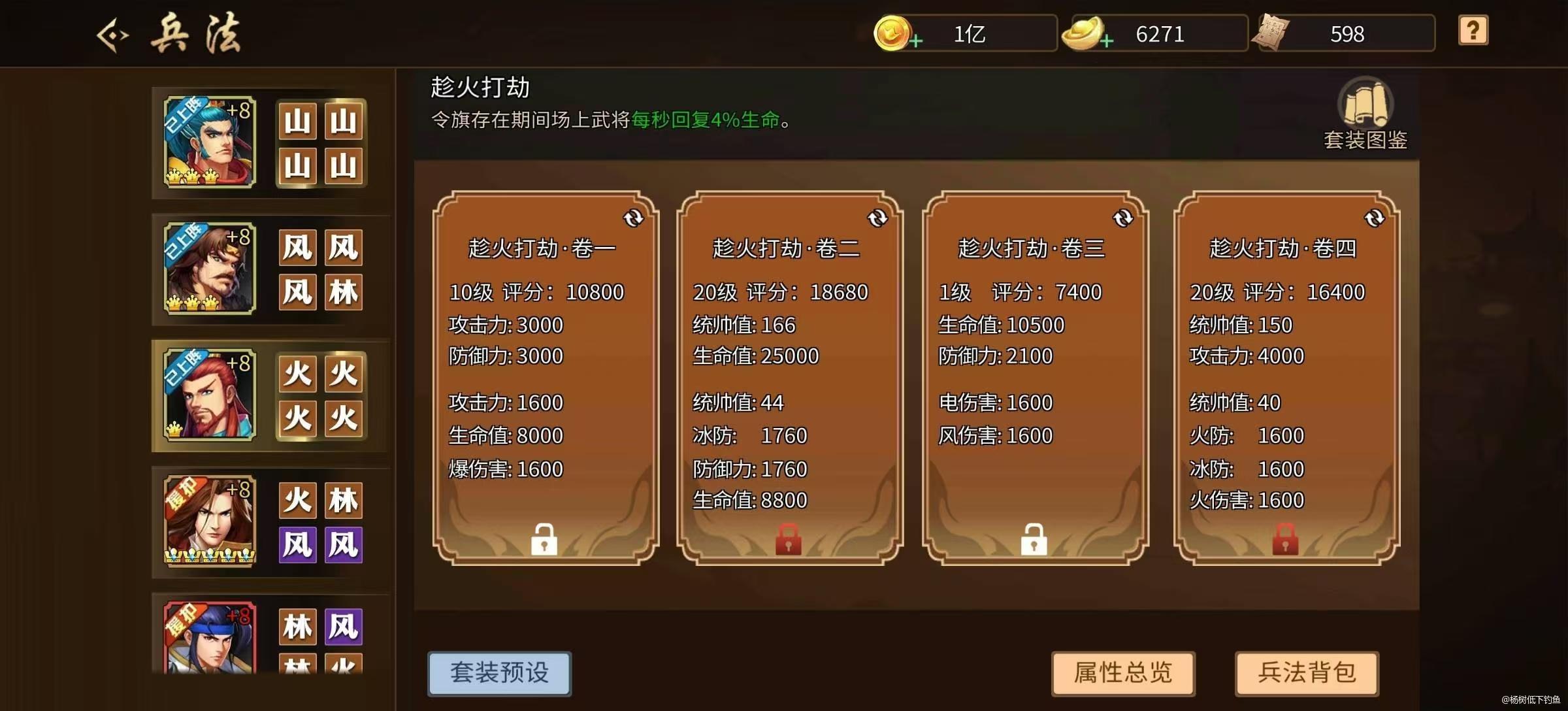 #攻略分享#如何提高兵法统帅值,目前来看是给卷2和卷4培养等级最划算,每培养一级,统帅值上升5点。我目前所有兵法都是给卷2和卷4升级,统帅值1240,再过一两个月估计就可以达到1500了。 另外兵法过关礼包是每个月都有的哦,今天打了和20层兵法演武场,跳出来了20层礼包,但是前面5.10.15层没有跳出来,估计需要打一下。但是紫色没有买的必要。