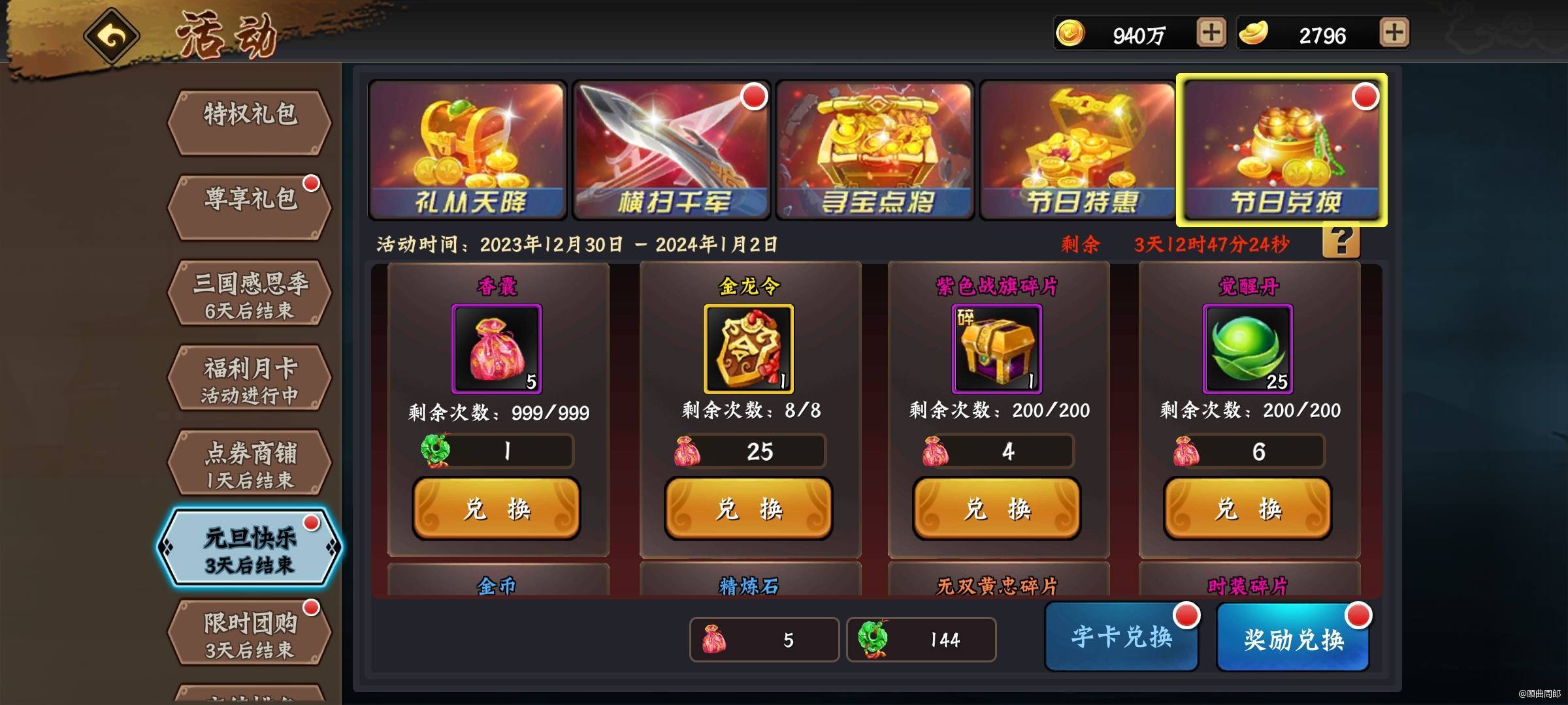 要想把战力提起来游戏材料是必不可少的,例如金币、精炼石、觉醒丹,金龙令,怎样快速的得到这些材料呢?恰好字卡活动是我们玩家最期待的。但是节日字卡活动你真的会玩吗? 顾名思义字卡活动必定有字卡,例如中秋节(中秋快乐),情人节(浓情蜜意)元旦(元旦快乐)。等等在国家法定节假日之外的一些节日当中游戏也会出一些字卡活动,例如(三国战纪字卡)等等都会有相对应的字卡。 其中从兑换的形式来区分又分为两种,一种是玉