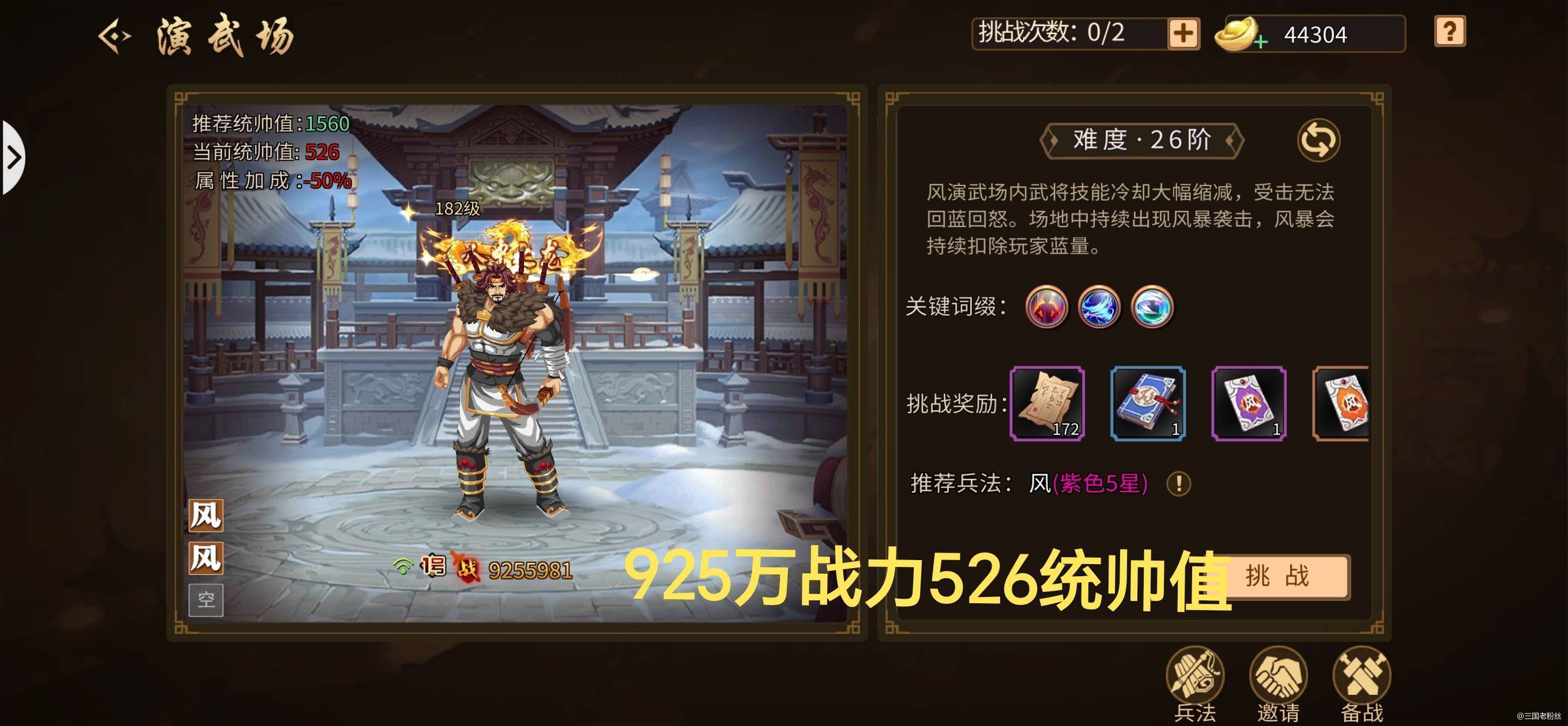 #攻略分享#【到底多少战力可以打26层?】 最近太多在问多少战力可以打26层的,最最主要的还是看统帅值的。 如图片,我有个接近1000万的号,统帅值800,我整天单挑22,23,打26?想都别想,伤害直接被扣了一半。 而图片中700万的号,统帅值则1000了。 为何会这样,主要是现在兵法刚出,前期很多号还没有兵法导致的乱象。 通过我的测试,我估计战力900到1000的,统帅值有个1300以上,就可
