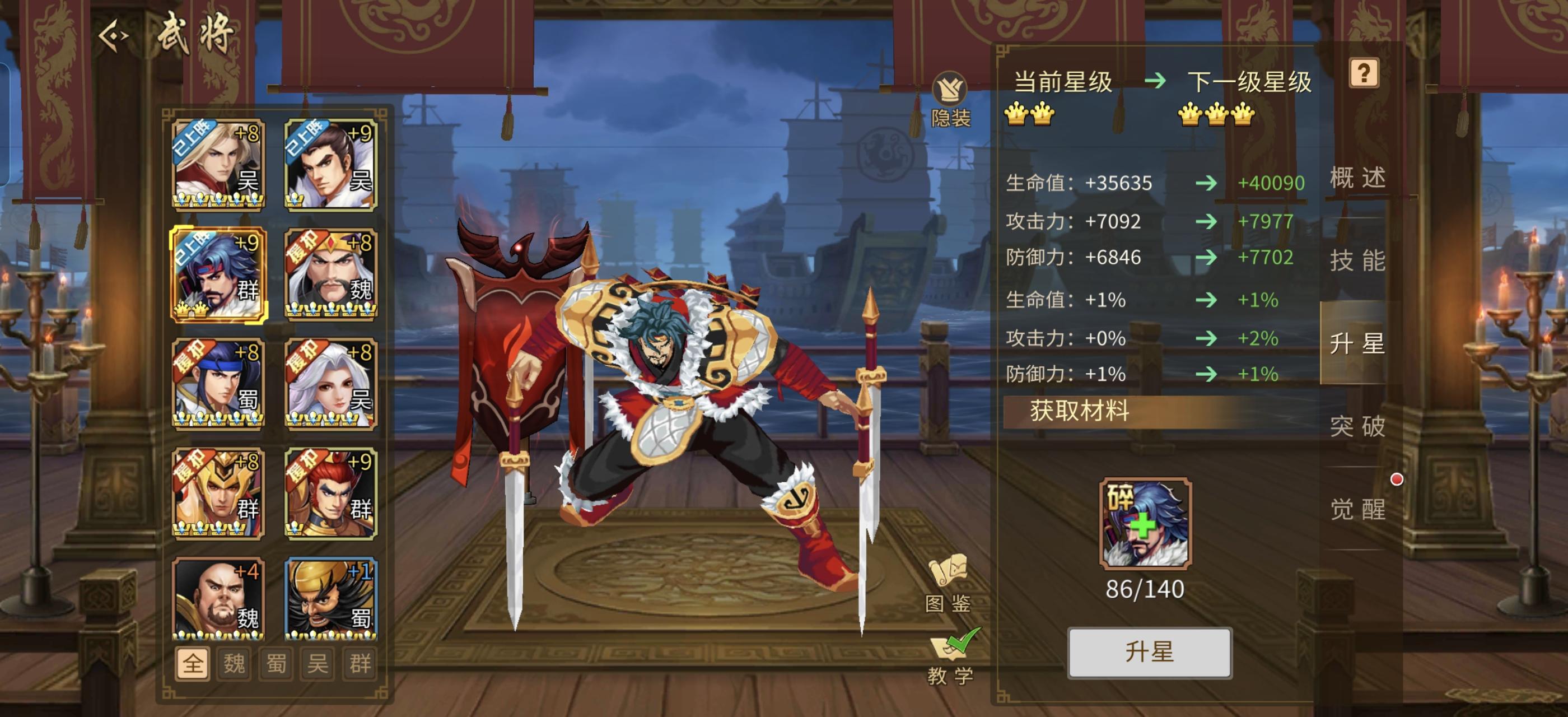 品三国、论演义,黯淡了刀光剑影、远去了鼓角争鸣。所谓:对酒当歌,人生几何。譬如朝露、优思几何。枭雄曹操一曲短歌行恺以当慷,何以解忧唯有杜康流传至今,今天小编和大家既不品酒也不行歌专就三国战纪手游中玩家遇见一时难以解决的棘手问题给予解疑答惑分忧。 相信许多三国战纪手游爱好者在手游中后期都会遇见金币不足,进阶材料不全、元宝不够等尴尬场景吧?尤其是在一些特定的活动中如:战魂觉醒、武将突破进阶以及令人动心