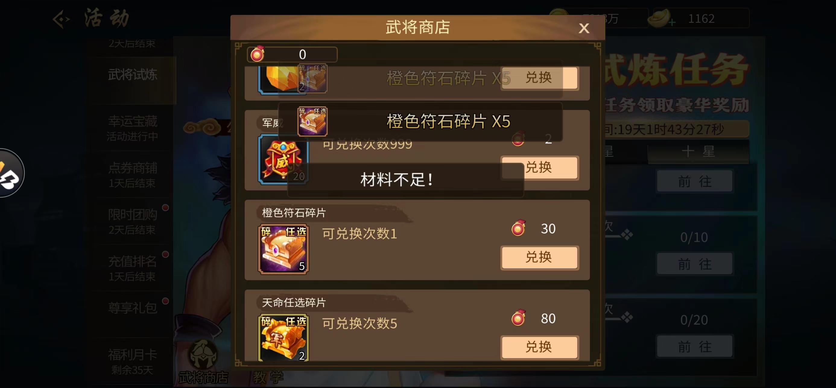 每天按部就班的完成公孙瓒指定的试炼任务武将商店、按需兑换玩家每天按部就班的完成公孙瓒指定的试炼任务后可以获取一定的货币作为奖励,这个所谓的武将商店就是用于大家使用货币来兑换自己心仪的稀缺资源,我根据试炼任务奖励汇总不同星级的公孙瓒所能够获得的货币。六星公孙瓒完成所有武将任务可以获得815个试炼币,八星公孙瓒可以获得最多2270试炼币(包含一冠奖励),而十星公孙瓒则可以最多获得2680试炼币(包含一