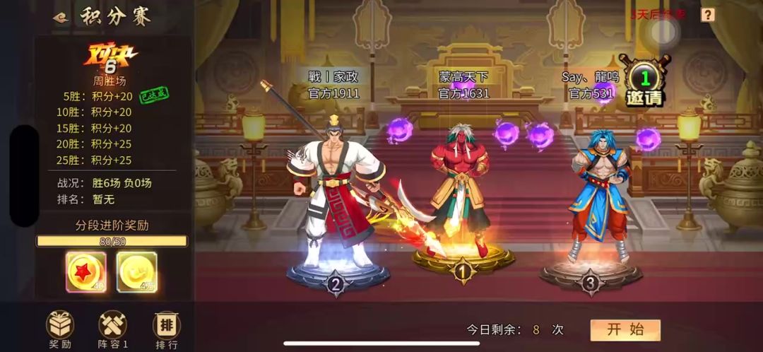 #攻略分享#积分赛当中张星彩如何运用好优势在竞技中取胜? 1.一般来说积分赛场地比较小,而很多人习惯把张星彩放在第一的位置,用来压制对手的武将让他们没有怒气。所以开局张星彩的打法很关键。 2.分两种情况讨论,一种是没有星彩的情况,可以说如果对面没有张星彩的话除非是战力很高能压制,基本上都能喝酒用3技能或者2技能开局打优势,如果碰到虎卫张郃,就可以等他飞天技能下来地面以后再用3技能或者1技能喝酒释放