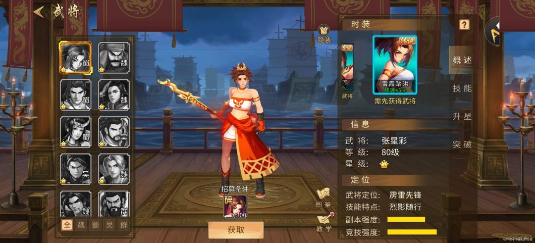 当下一招鲜吃遍天的时代已经过去了,都说张星彩竞技的能力远强于副本,其实张星彩搭配援军郭嘉在面对魏国攻城略地武将时远比拥有对魏国先天压制属性的吴国武将伤害更足,我的阵容张星彩加马谡再配置一个陈宫,张星彩顶替了一贯首发聚怪的神武小乔,她的先发冲击力真的不俗,辅以郭嘉聚怪的能力再加上火书燃烧的加持,伤害杠杠的,聚气结束切陈宫配合打出海量伤害,基本不用借高战武将就可以早早砍下15层后选择躺平,距离张星彩调