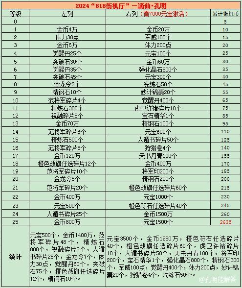 现在,让我们梳理一下即将到来的街机节的精彩活动; 1. 迎来了一位全新的武将——勇猛的虎卫许褚,他将如何在战场上展现他的威力,令人期待(具体效果请根据全渠道大家使用情况再定夺买不买)。 2. 玩家们将体验到一种类似种树的活动,请留意邮箱的更新和维护,避免误点。如果你邮箱中保留了1500体力,提前一天储备体力即可。 3. 预存40个金龙令,现在一个月元宝不要乱用了,元宝留着818兵法系统使用。 4.