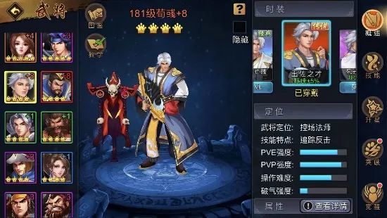 荀彧居中持重十数年,处理军国事务,被人敬称为“荀令君”。他在战略方面为曹操规划制定了统一北方的蓝图和军事路线。同时,为曹操举荐了锺繇、荀攸、陈群、杜袭、戏志才、郭嘉等大量人才。因其在建计、密谋、匡弼、举人等方面多有建树,被曹操称为“吾之子房”,堪称曹操统一北方的首席谋臣。同样三国战纪游戏里荀彧技能玩法也非常出色, 一技能:金戈铁马(暴属性,蓝耗40,冷却7秒),上下键两种释放模式,能正反向操纵战马