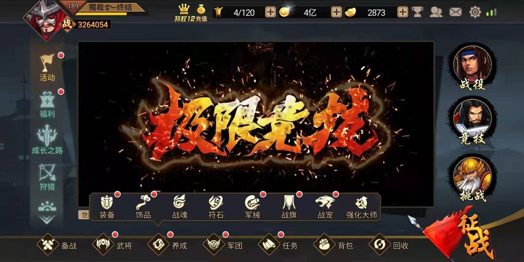 导语 如果说武将是手游一切玩法执行的载体,那么装备的辅助就是给武将装上了一对翅膀,可以扶摇直上。熟悉三国战纪手游的小伙伴们都清楚,游戏的装备养成讲究循序渐进,人民币玩家可以一日千里,但也有少部分小资玩家花了钱未必就比一些平民精英培养得当,这还是在于玩家对于游戏框架和脉络的了解和精准拿捏。今天小编就从点及面,和大家说说手游的基本架构“各类装备”的渐进式养成。 点开养成一栏,映入眼帘的各类装备,培养分