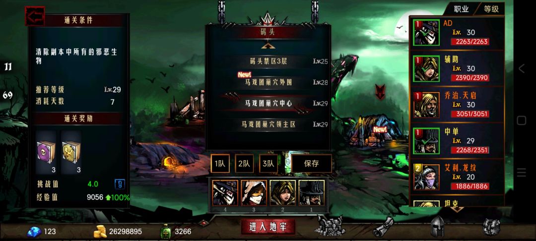 招募四个新的一级英雄400/人,带着下副本(第一个和第二个)出来3级,解雇他。大概能获得2000/人的金币。