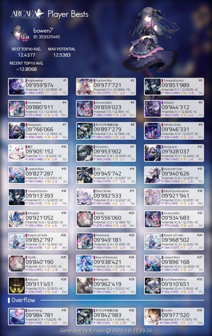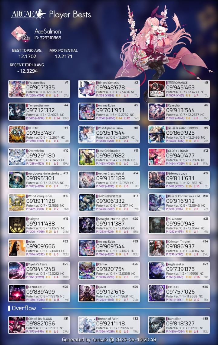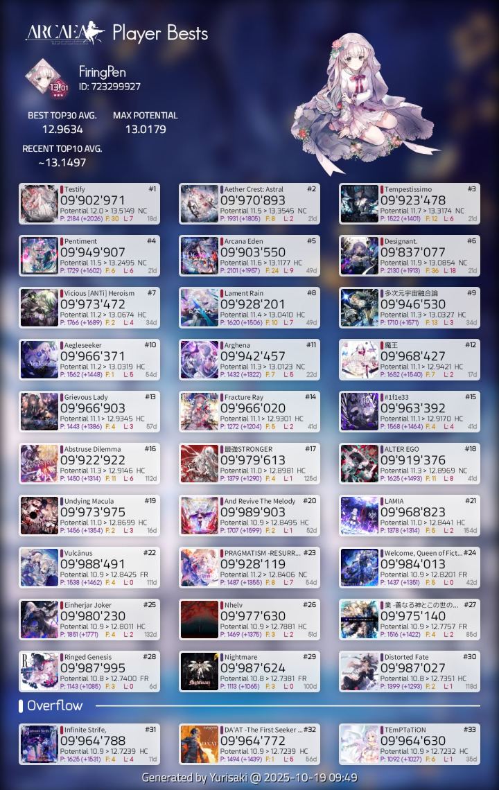 最后附一张个人best30,本人游戏时长1000h+全曲包+全单曲+ptt13,我认为我有这个资格发言。