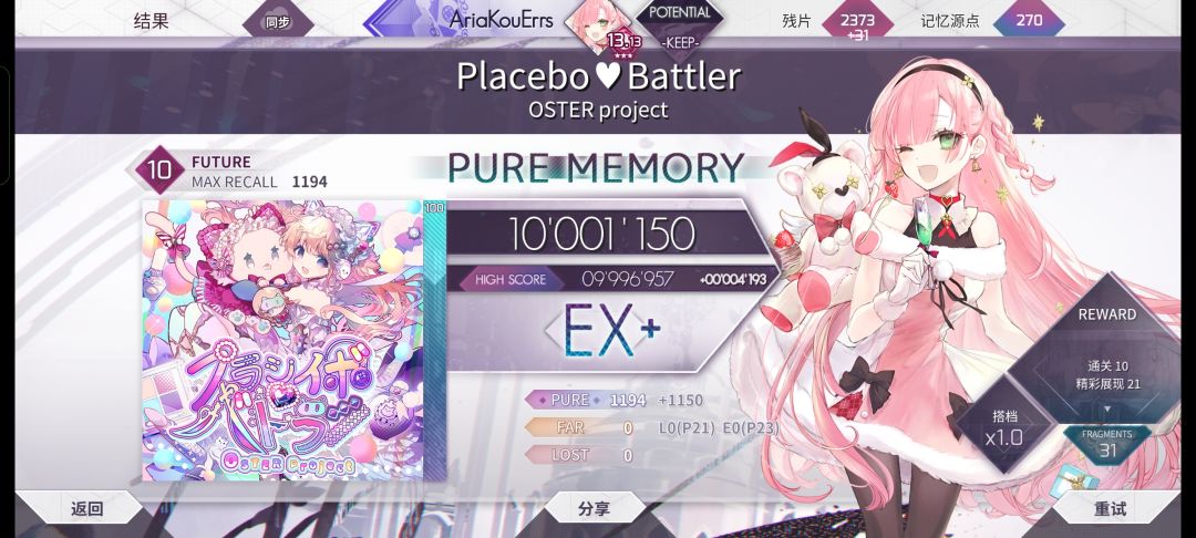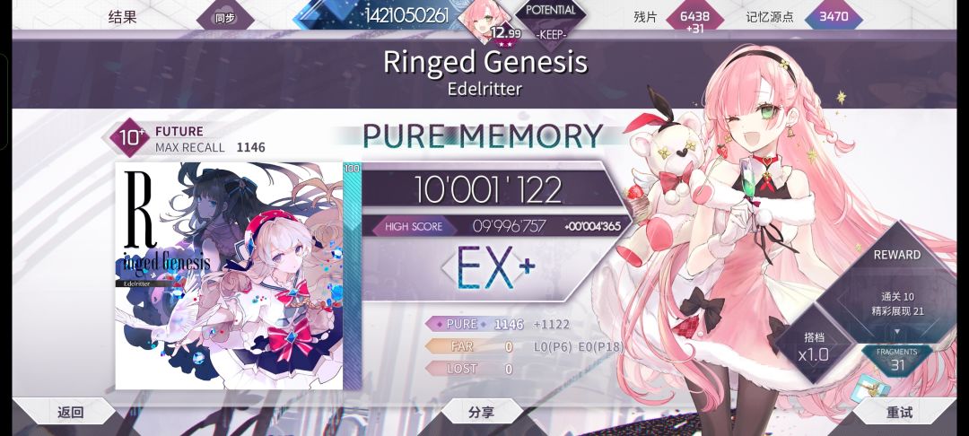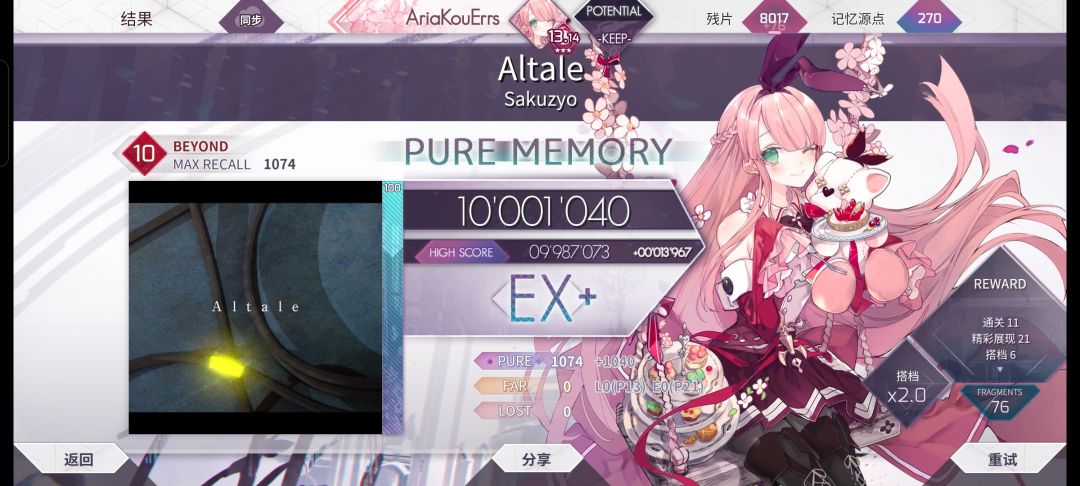 由于赶工,做完这个视频差不多早上4点了,有很多细节可能有些出错,还麻烦在评论区指出一下,到时候我进行标注(在tap上传的版本是已经修改过一次的版本,由于taptap不支持弹幕和修改视频,所以有错误的话可直接在评论区指出) b30图会放在评论区 第一天入坑这个游戏的时候就觉得这个游戏很难,从来都没有想过摘星,包括前些日子打到11.96的时候也是,连续几个小时推分都推不出来0.01,那个时候就想放弃了