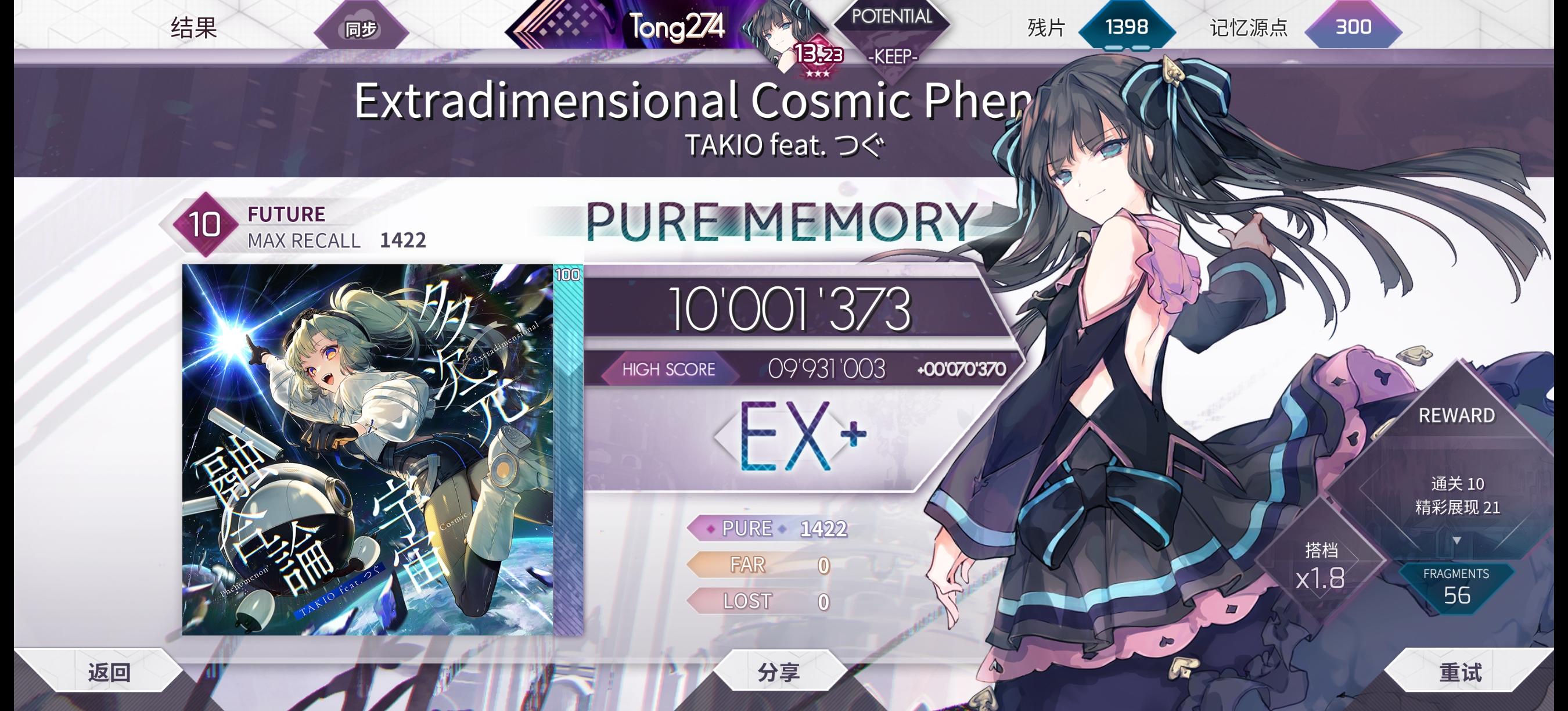 8+及以下的ftr,etr全部PM,除了摔死和记忆工厂基本都是3把以内秒杀,还打了两个理论值。现在开始按顺序推9,平均小p数在15到25这个区间,有几个蛇占比多的能打进10小,虽然我感觉自己的准度提升了很多,但从9开始就有更多更加复杂的节奏出现了,同时某些令人难受的定位也会使爆小概率大幅增加,总之现在的目标就是推PM的同时尽量推准(能进排行榜就行),预计等推完9+就能到300PM了。目前离13.