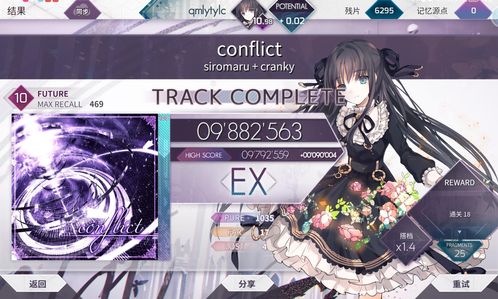 今天给夏伊莉丝爬梯升级,结果在限制格子里碰到了图1这歌的谱面,碰见一次扣一次0.01😭,不过B站的网友们说的对,CHAOSBLAST的FTR确实好嫖分,不过尾杀愣是不会打,前面也爆完Far了😭#arcaea