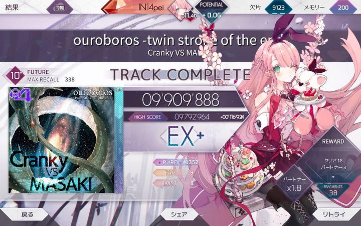 最最最最最喜欢的一集,完全长在我的xp上() 从初见到pm应该是打了7把,没有手癖点,很均衡的谱子