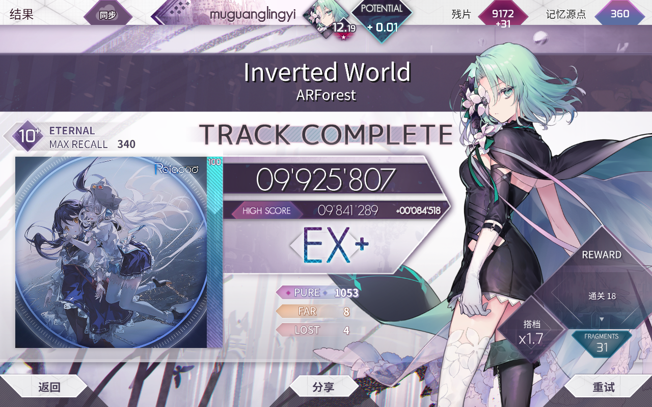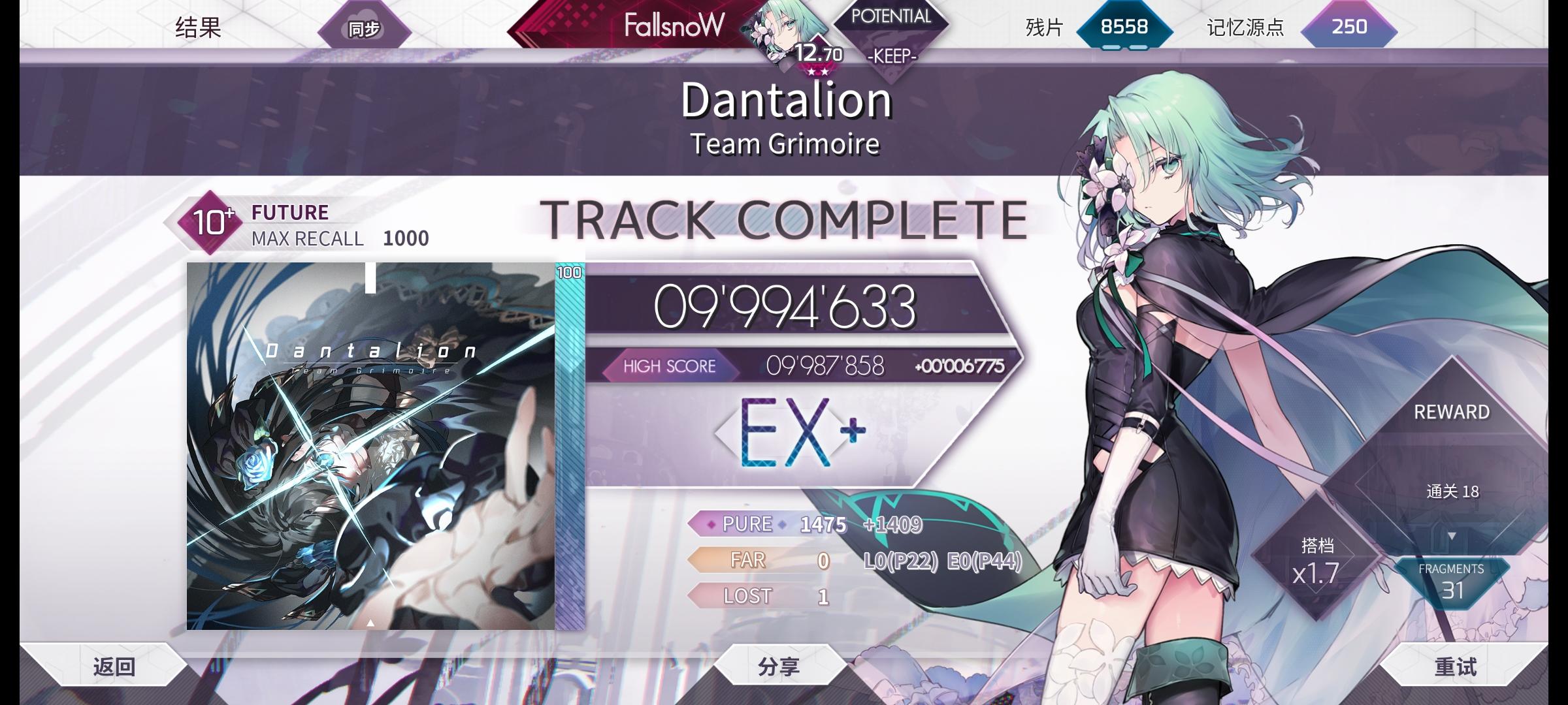 随着定数更新被一脚踹回了12.1 不知不觉也快一年了。不知道什么时候起觉得这个游戏好陌生...上次上线好像还是因为vita更新了新的立绘 但是新剧情究竟是什么样的我都不知道(有笨蛋打完手一歪摁到退出没截到+0.01的图w嘛 新年第一天推分 也算是一个好的寓意了x祝看到帖子的你新年快乐 底力++ rp++(逃)