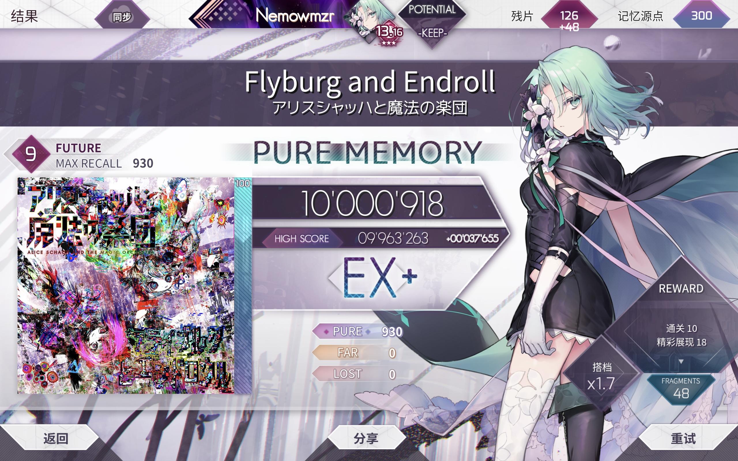 第100个10级PM 【Arcaea】aterlbus/αterlβus (Future) Pure Memory (-34) 音符流速:4.7 偏移率:97 录制日期:2026/1/11 #arcaea #音游 #手元