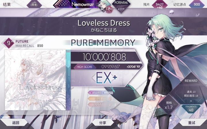绿AE解锁纪念!上次在arc演唱会上听到了绿AE,就喜欢上了这首歌 现在到了寒假,就把它买下吧!(这也是我买的最后一个主线包)异象和剧情还是一如既往的帅!另外个人觉得in vain写挺好的,为数不多初见这么高的9()