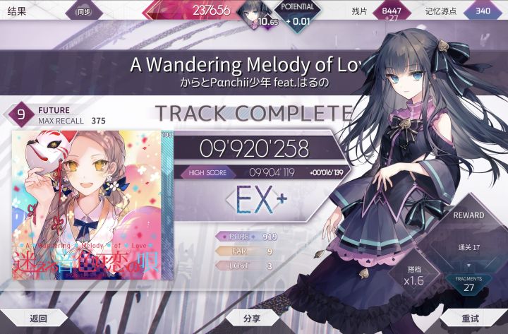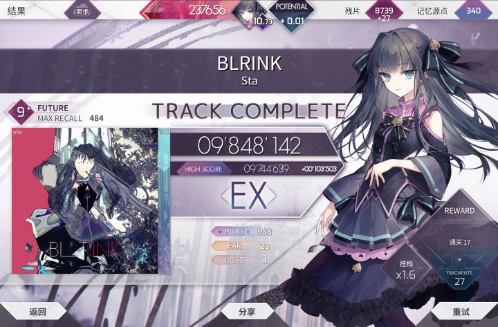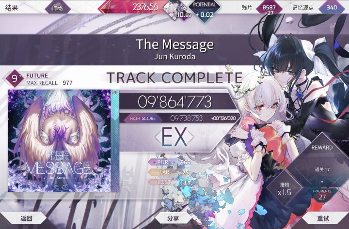 个人定数11.7,不过底力要求比风暴略高一点又是一个不错的突破,而且分数大幅超过了过段要求的980😋不过8dan将在100年后pass,Amnehilesie的230bpm交互还是太恐怖了,那首歌个定至少12.0