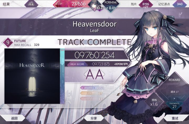 借助一众底力谱,成功飞升!一天推进0.15!感觉9+的节奏有些难找(尤其是Sulfur的休息段和BLRINK的尾杀),The Message和天堂门基本上是熟练度问题了,有时候手序乱了#arcaea #arcaea准度 #arcaea萌新