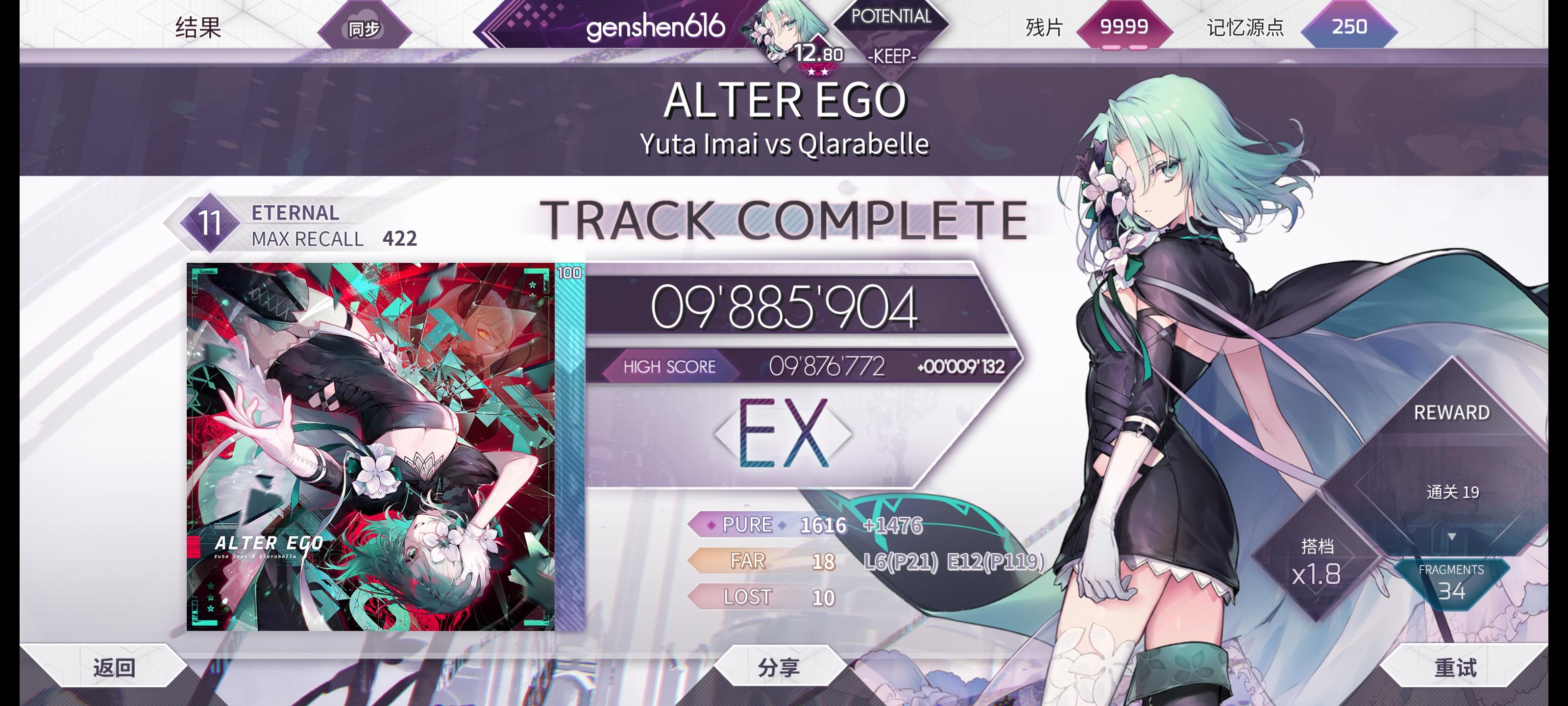 感觉etr难度在这个游戏已经成为了常态,而其中又有不少非常难打的谱……自daat之后,新的10+和11基本都去了etr难度,唯一的一个ftr在10+及以上的谱是altergate。那么,我能在下一个ftr11出现之前,制霸ftr难度吗……?