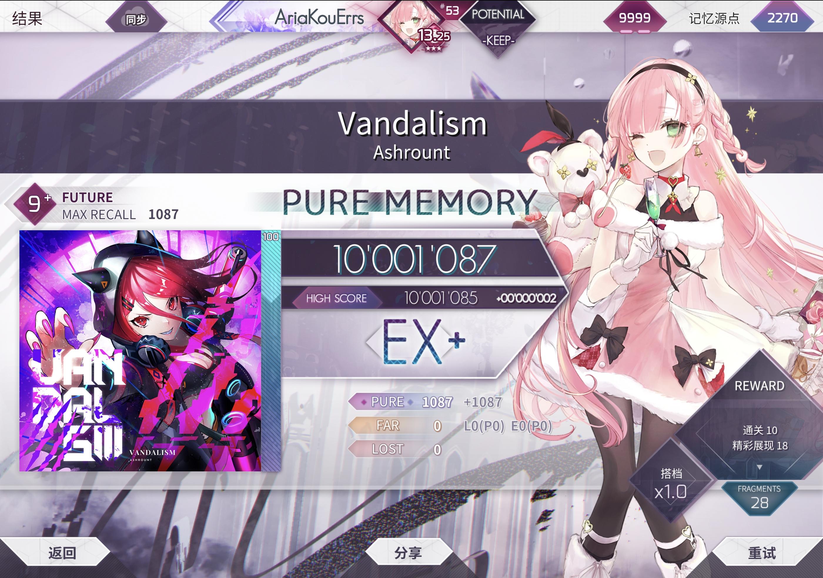 随着定数更新被一脚踹回了12.1 不知不觉也快一年了。不知道什么时候起觉得这个游戏好陌生...上次上线好像还是因为vita更新了新的立绘 但是新剧情究竟是什么样的我都不知道(有笨蛋打完手一歪摁到退出没截到+0.01的图w嘛 新年第一天推分 也算是一个好的寓意了x祝看到帖子的你新年快乐 底力++ rp++(逃)