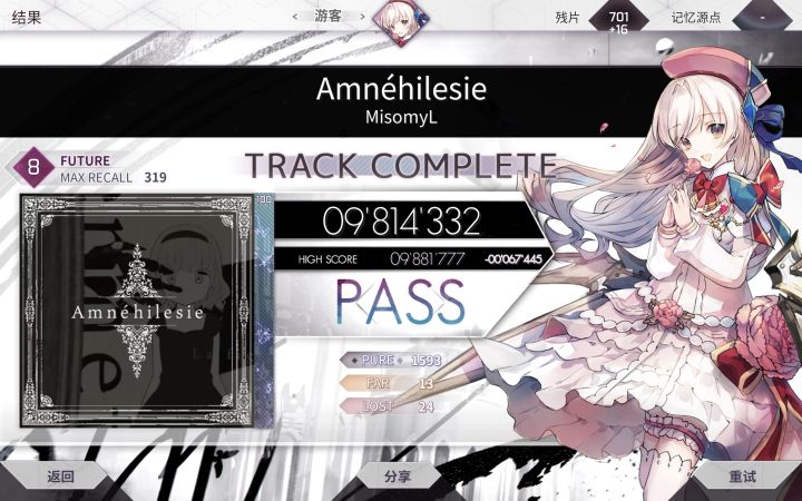 更完之后一口气推出来了,新曲子都很简单,但玩起来很爽,9+全pm的进度已经到h打头了,等周年庆实现全曲包后感觉400p也不是问题