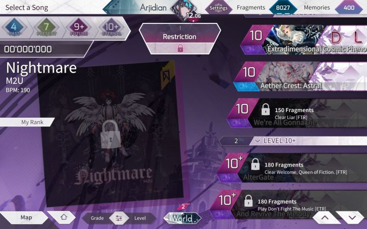 到限制格发现全是付费曲只有一个开头都还没打明白和10和一个前置曲还没trace complete的10+开了后。对立:我也要track lost吗