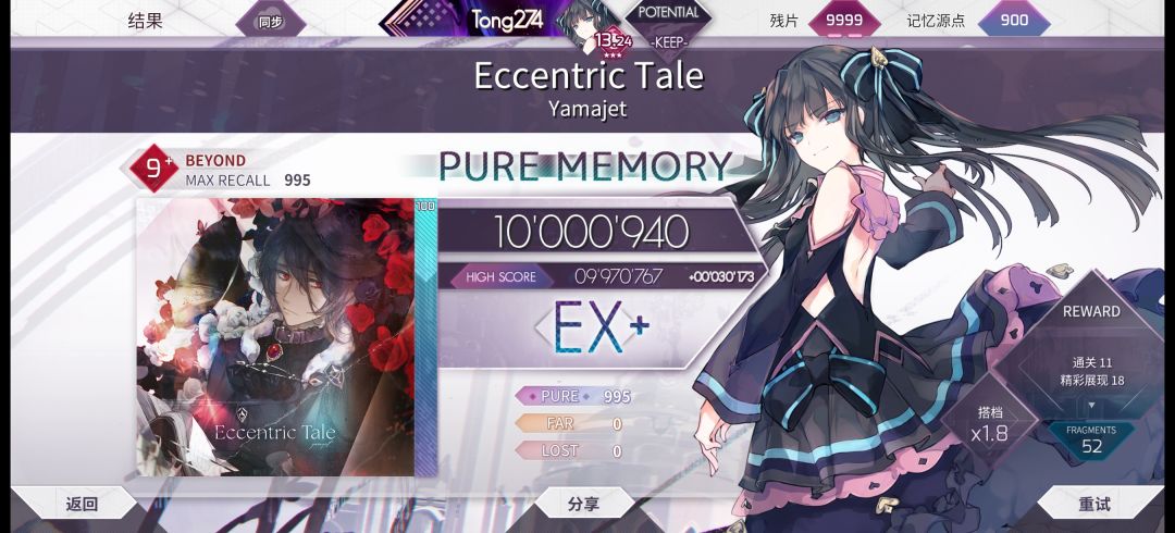 【Arcaea】Eccentric Tale (Beyond) Pure Memory (-55) 音符流速:4.7 偏移率:97 录制日期:2026/4/27 #arcaea #音游 #手元