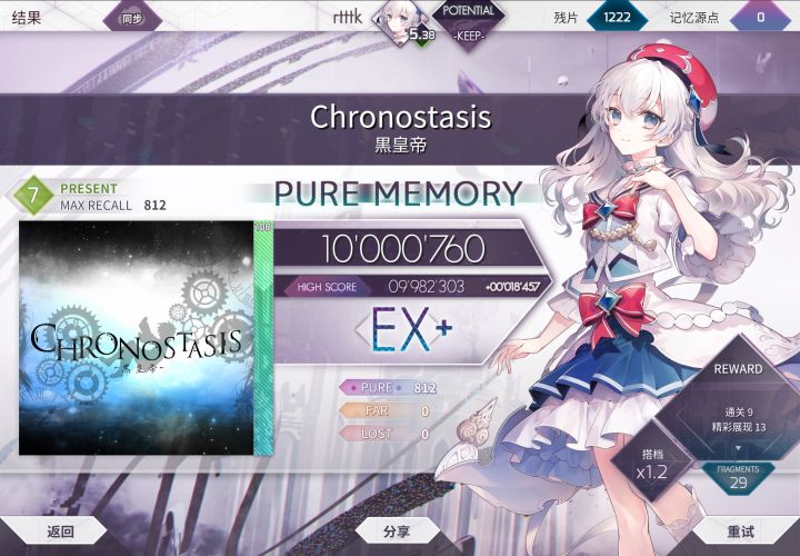 断断续续玩了十天左右,ptt只有8点多刚从phi转过来还是挺不适应,蛇不怎么会接,甚至天地键都经常看反FR的歌准度基本都很拉垮,PM凑了凑就只有上面这几张(判定怎么这么严)