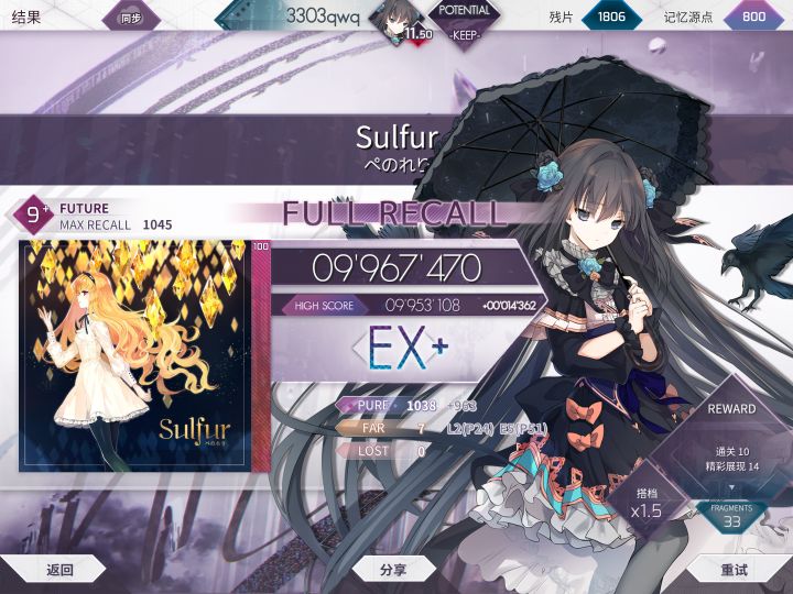 把终章解完以后就开始推(ttf没截上,初见prs956),然后就先试了超新星,一堆16分短交互直接爆了200+个小P打了红蓝,看了锁屏以后4pc过,一口气涨0.02!