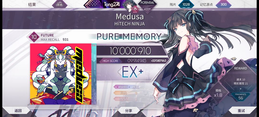 【Arcaea】Medusa (Future) Pure Memory (-21) 音符流速:4.7 偏移率:97 录制日期:2026/1/12 #arcaea #音游 #手元 #musedash喵斯快跑
