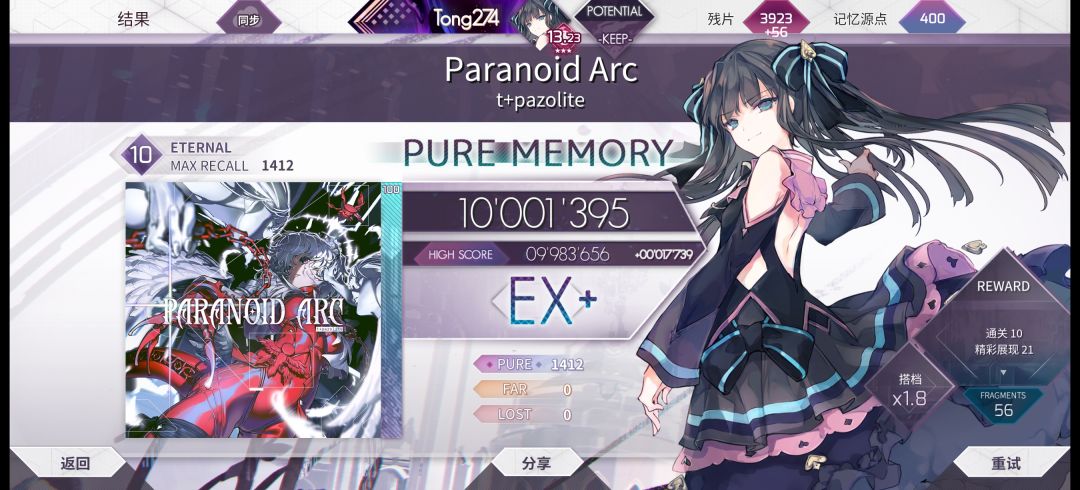 第40个etr pm 初见被吓晕,研究了之后直接起飞( 准度这么高有点意外了( 【Arcaea】Paranoid Arc (Eternal) Pure Memory (-17) 音符流速:4.7 偏移率:97 录制日期:2025/12/26 #arcaea #音游 #手元