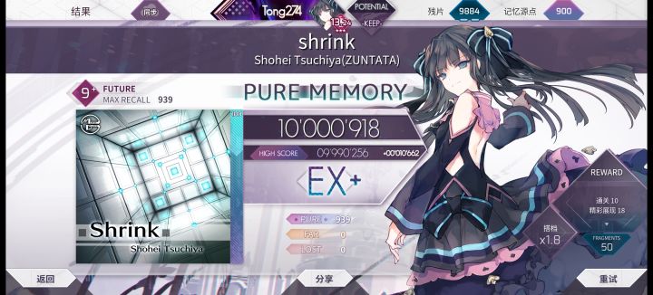 scarlet cage是昨天打的,shrink是刚刚打的排名是截止到昨天的,终于进入前1000了还剩四个10和altergate