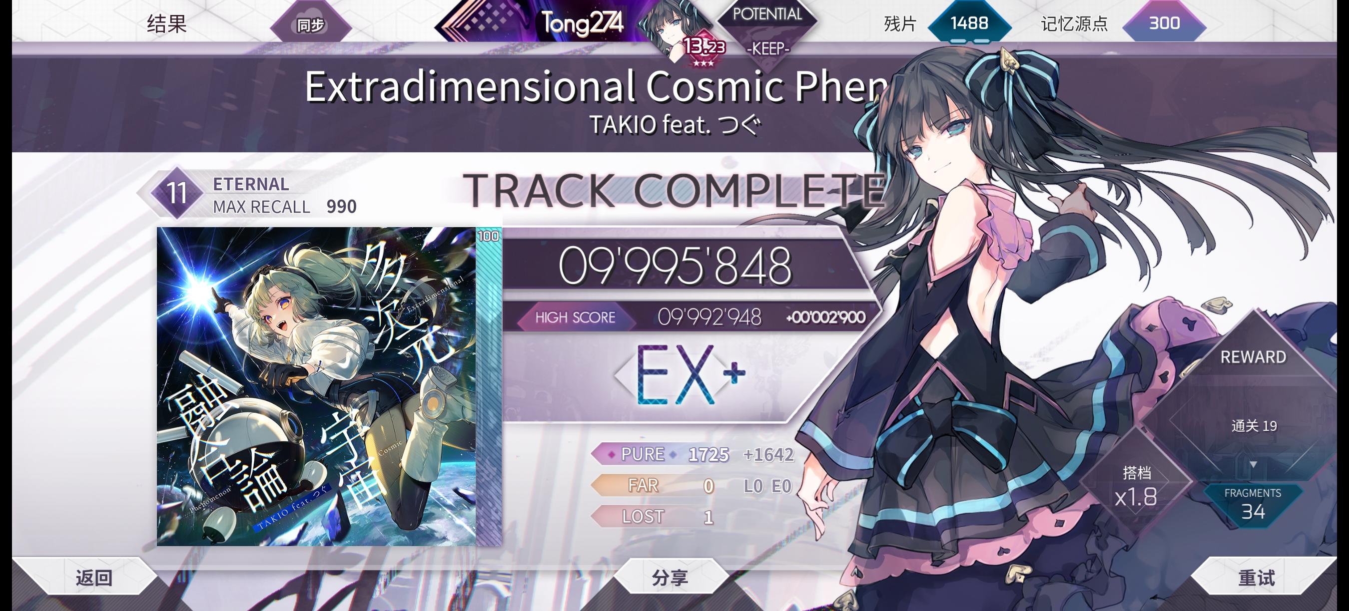 打了整整两个小时大概是受了昨晚打ftr的变速纵连的启发,套用了一下相同的思维模式,今天前半段通过率稍微高一点了,但是从短长条+单键跳拍开始就基本上总是会爆,包括彩虹段的7连音和紧随的天键4k,outro也极其不稳今天最久生存到1462combo处,打得最多的是998.4w现在只觉得很心累。
