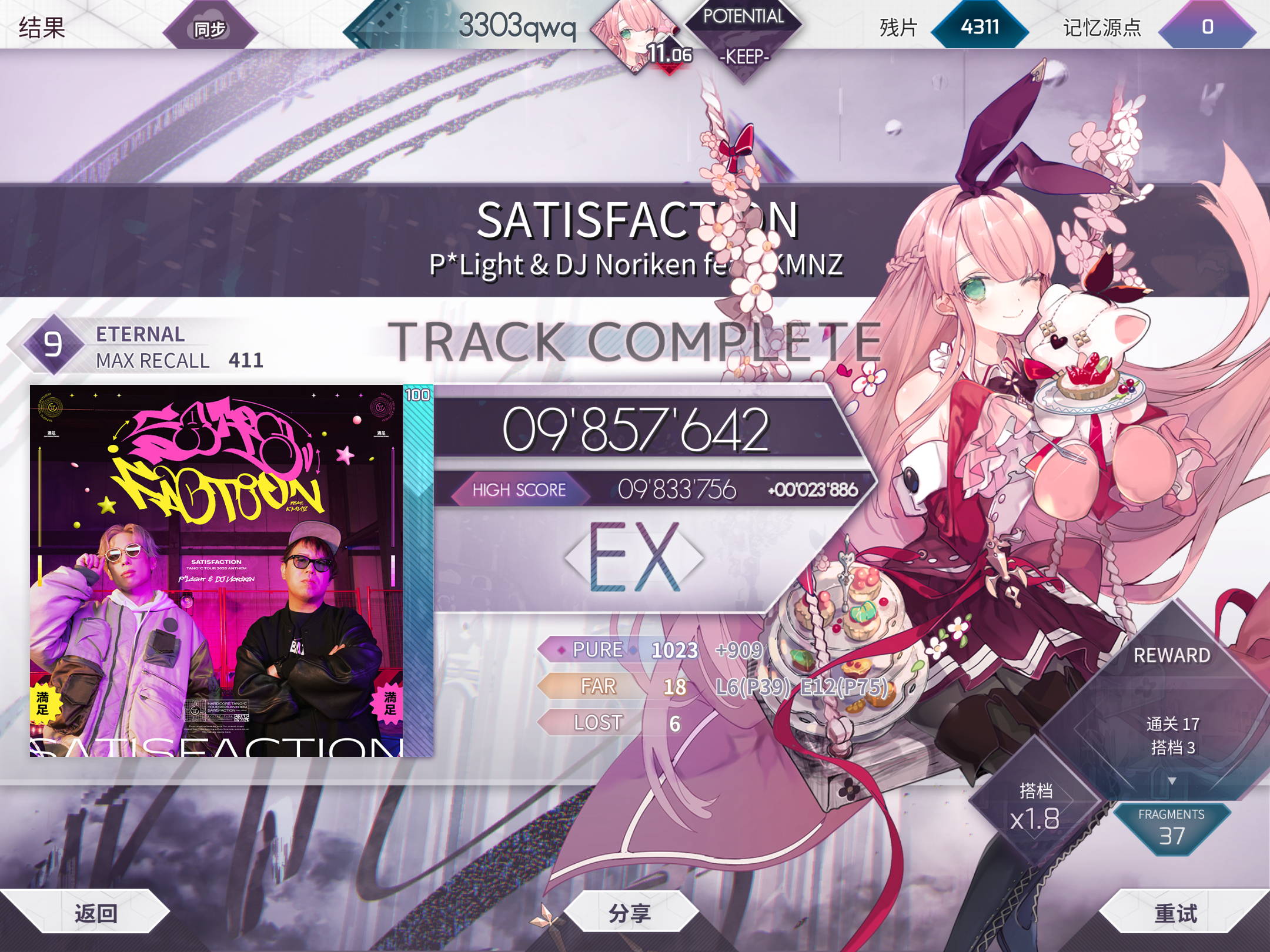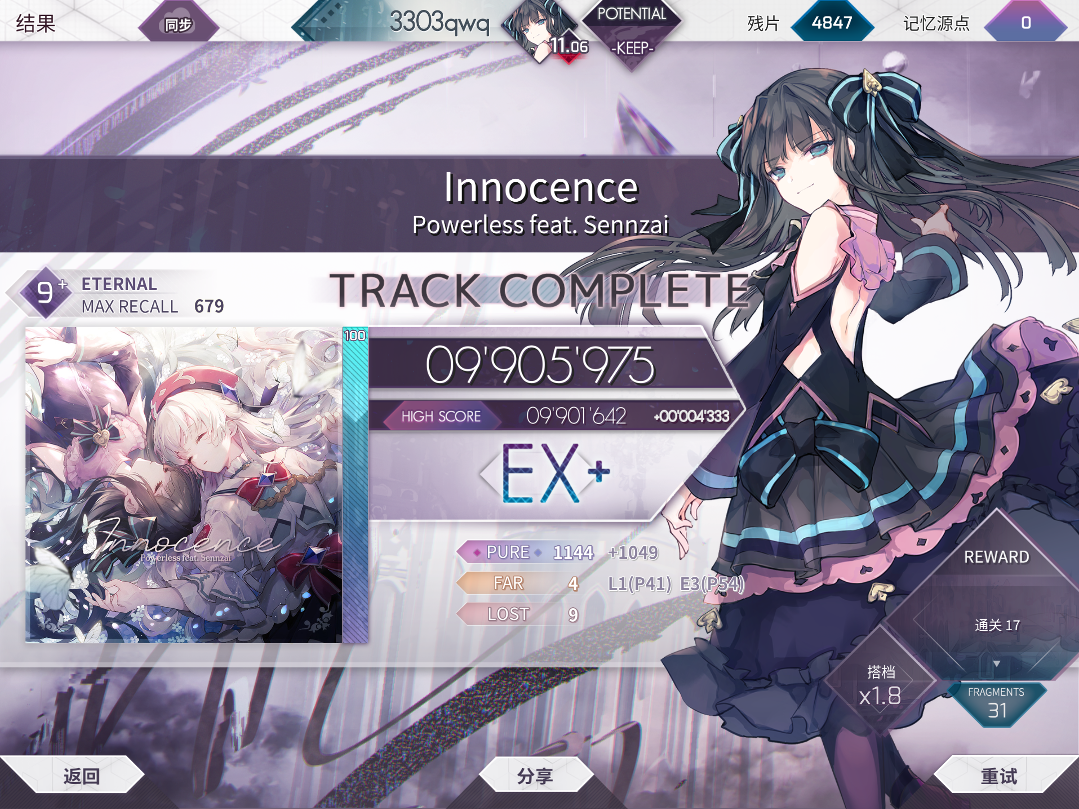 这首也很好吃分哇,曲子也挺魔性的为啥都说这首不好打()直接飞到b4了,r10离萌新线差0.001()
