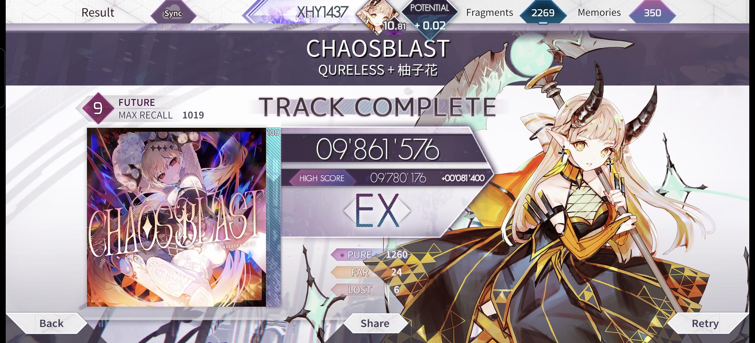 今天给夏伊莉丝爬梯升级,结果在限制格子里碰到了图1这歌的谱面,碰见一次扣一次0.01😭,不过B站的网友们说的对,CHAOSBLAST的FTR确实好嫖分,不过尾杀愣是不会打,前面也爆完Far了😭#arcaea