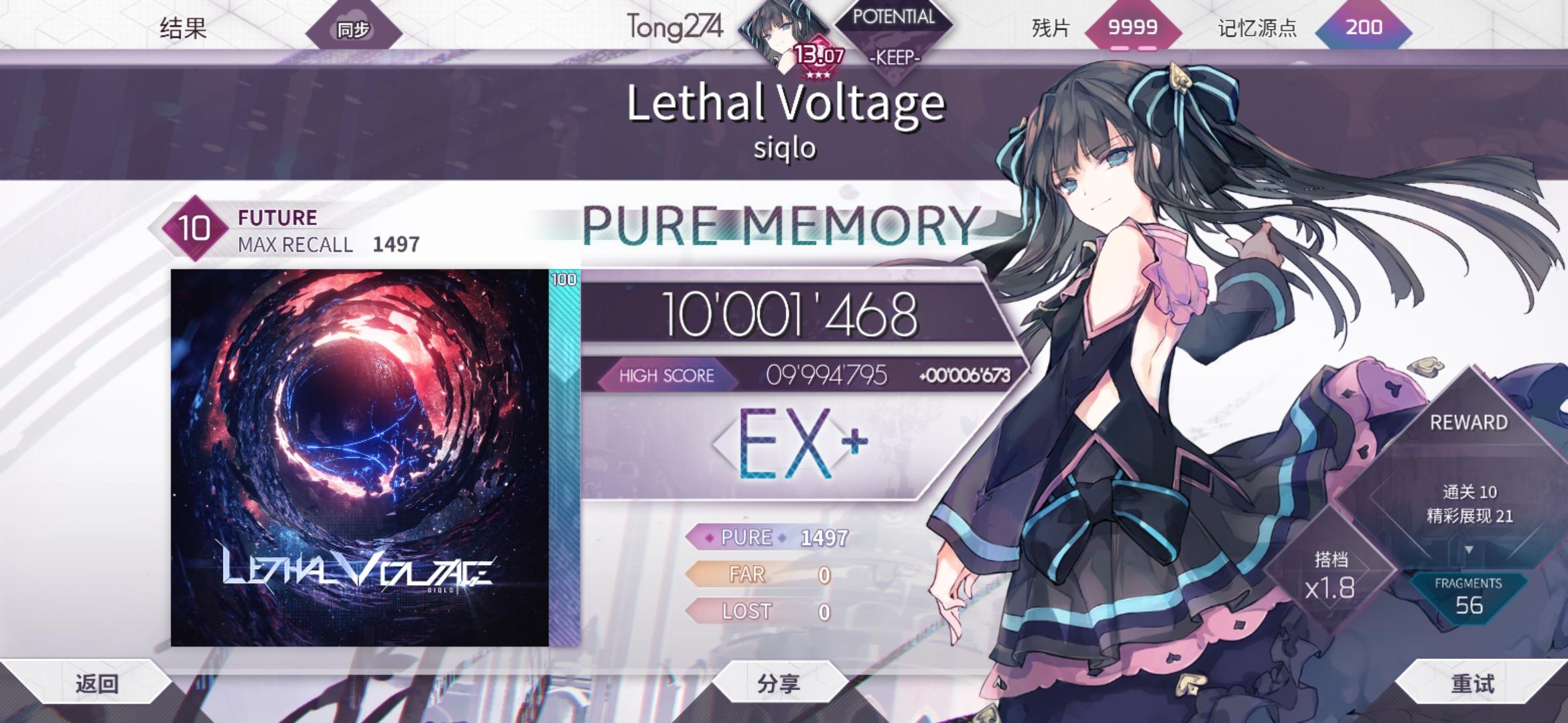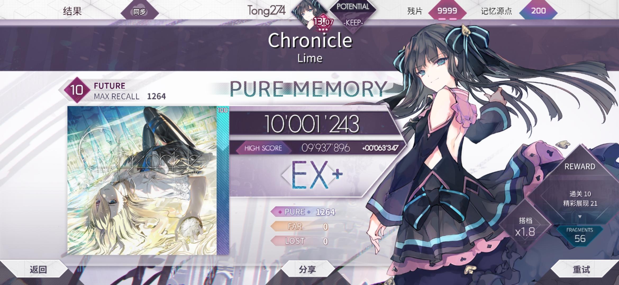 达成于2024/6/21 13:32:53(手机截图时间) Arcaea 5.7.1版本10+谱面全部PM达成 正片在1:36处 起初真的没有想过自己可以制霸10+…… 做片头的时候有种莫名的感动…… 这首真的神曲😭MisomyL不愧是用一首无机质就能惊艳到我的人😭😭😭 最近arc又要更新,希望不要出一个特别难的10+( 【Arcaea】Désive (Eternal) Pure Memory (