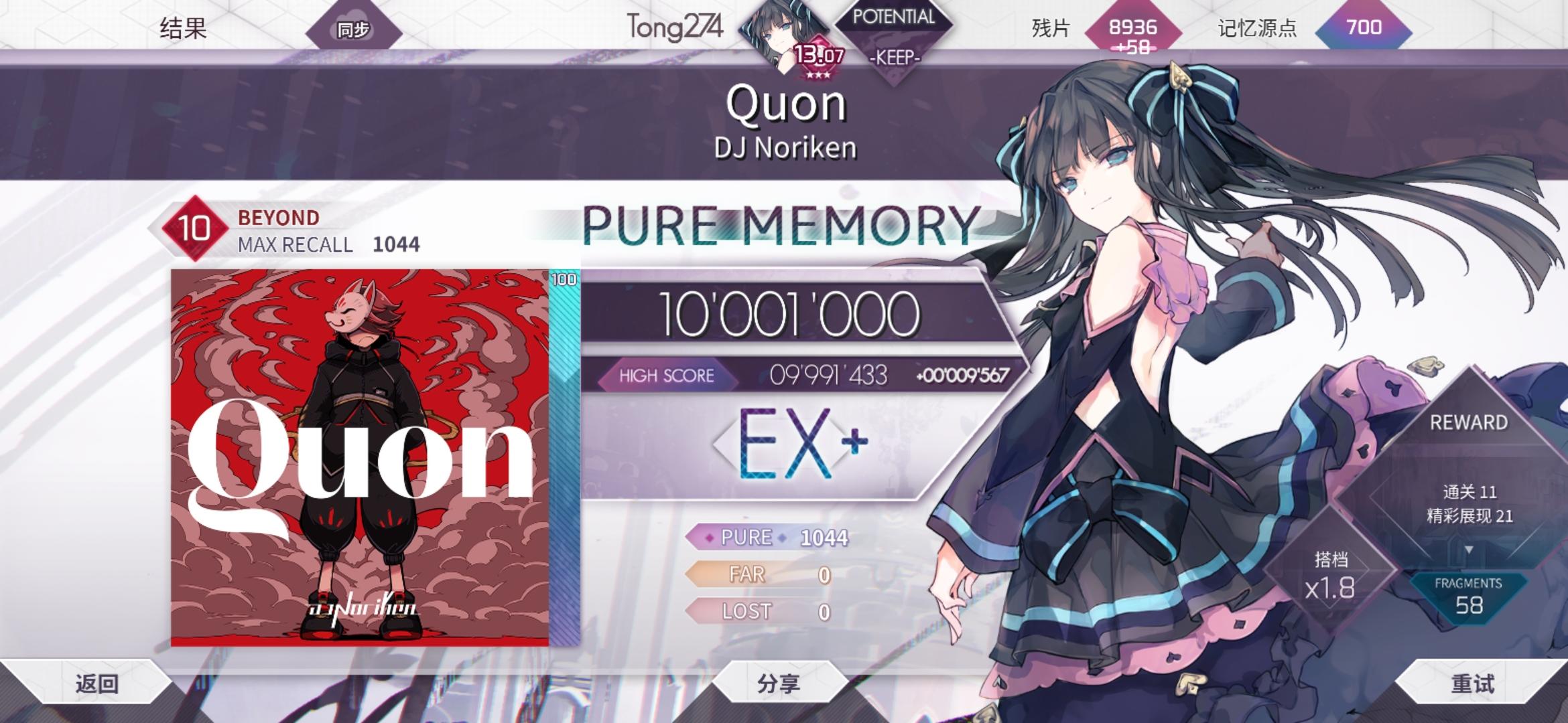 好听好玩[表情_wink] byd第35个pm 【Arcaea】Quon (DJ Noriken) (Beyond) Pure Memory (-44) 音符流速:4.7 偏移率:330 录制日期:2024/5/3#arcaea#音游#手元