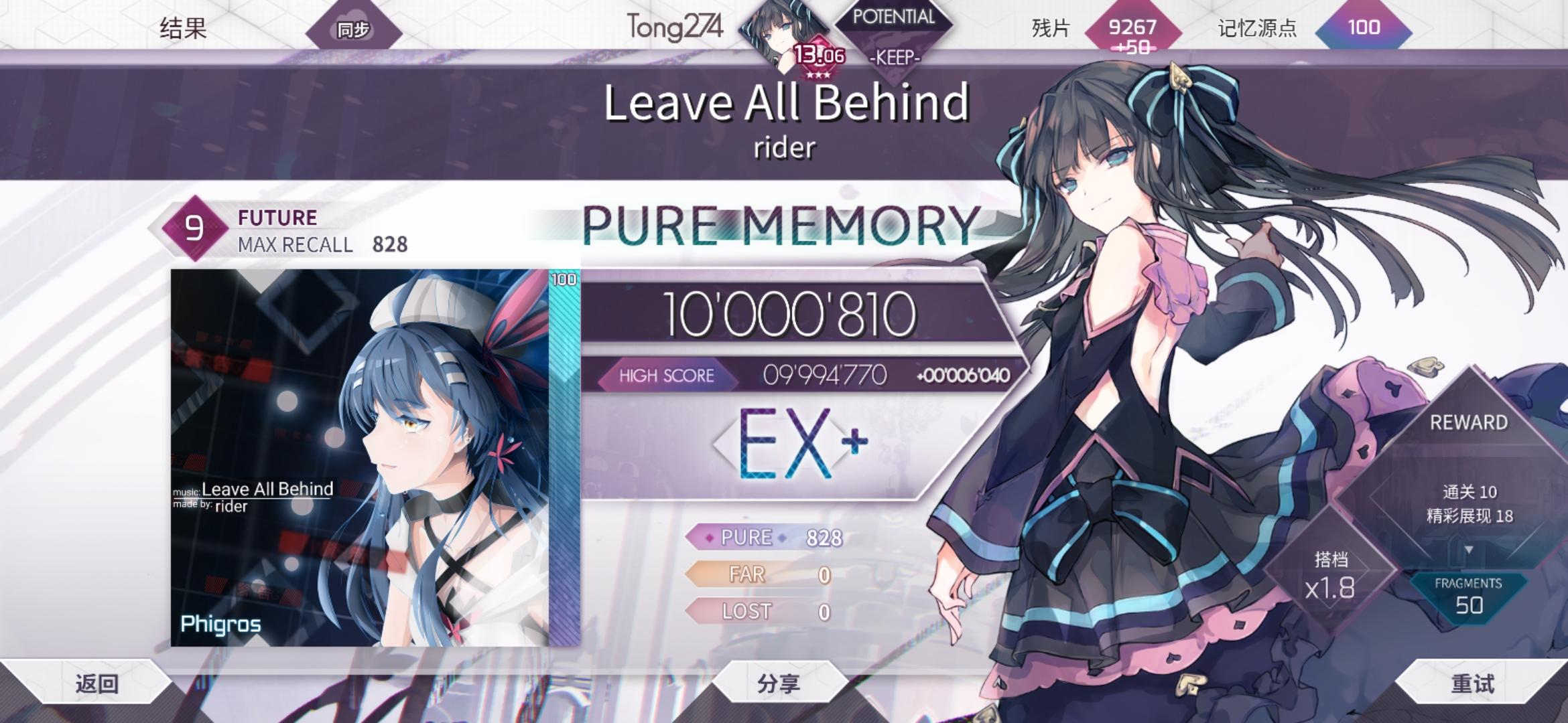 Leave All Behind曾经作为Phigros的图标,想必是一首具有特殊含义的曲子 它也是我在Phigros的IN难度取得AP的第一首歌 Arcaea选择了这首,真的让我泪目了(っω-`。) 【Arcaea】Leave All Behind (Future) Pure Memory (-18) 音符流速:4.7 偏移率:330 录制日期:2024/4/27#音游#arcaea#phigros