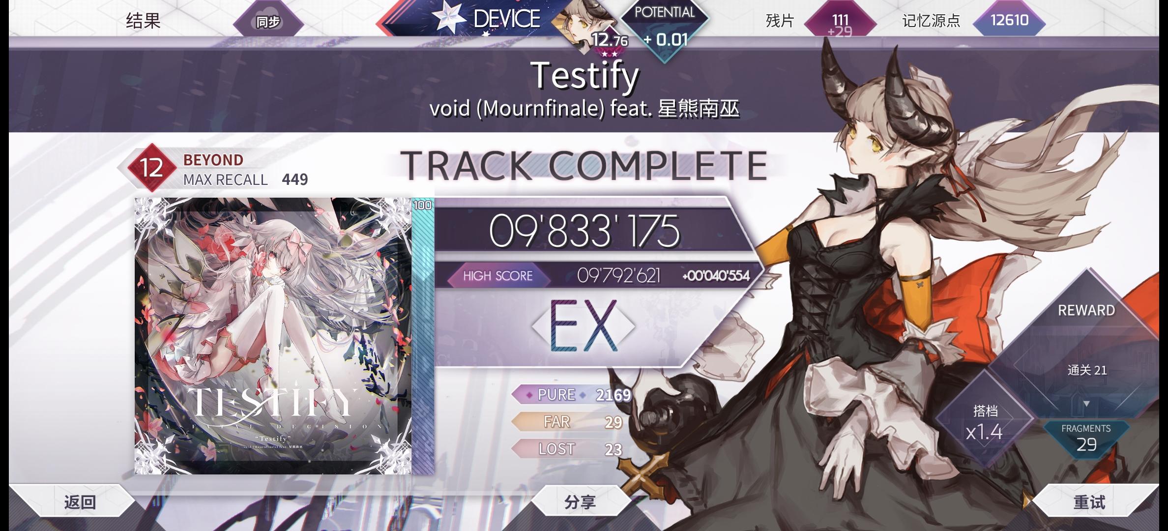 原本我是要收掉《Give me a nightmare》的,但打到2/3的时候心态炸了#arcaea