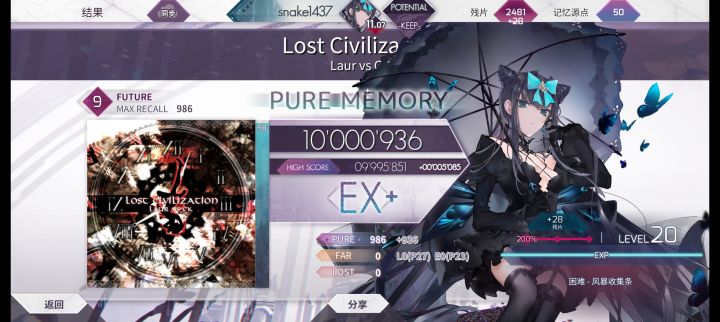 这首我觉得挺水,3pc大概是简单的9吧玩过DJMAX之后就开始喜欢这首歌了,前奏好听!好听好听!可可爱爱的歌声,谱面我觉得比较简单比较简单的歌,只是打了几遍还记不住节奏()520左右的蛇我好容易红😤😤刚刚打完,这是9.1吗??小p控不住,有单指扛完2纵之后接着扛3纵,有大出张接地键,有考验稳定度的单指匀速敲4分,有小p爆发的天地双押转交互🥹#arcaea