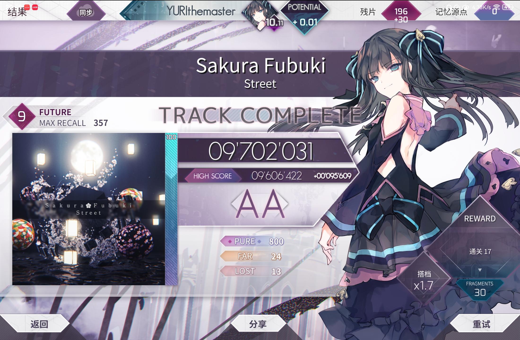 仅一个多小时涨了近0.2,看来今天板子没有被guy控制##音游arcaea #arcaea #arcaea萌新 #arcaea英国人太好了